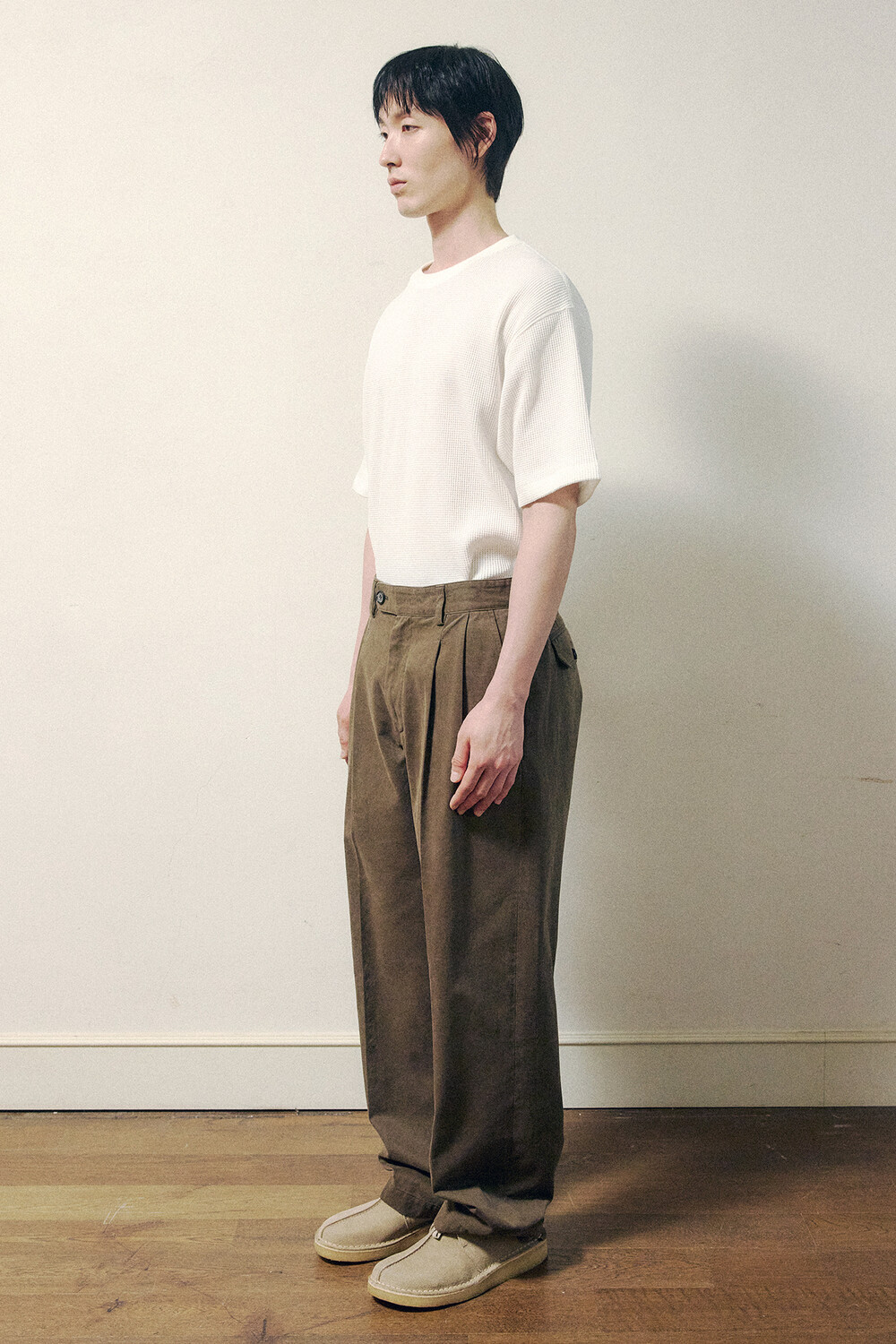 Haku 하쿠 코튼 와이드 팬츠는 ‘하쿠 (はく)’ 에서 유래한 이름으로, 두 가지 의미를 담고 있습니다. 첫 번째는 한자의 穿(하쿠) 로, ‘바지를 입다’라는 행위를 뜻해, 이 아이템의 기능과 본질을 직관적으로 드러냅니다. 두 번째는 白(하쿠)로, ‘흰색’ 을 의미하지만, 단순한 색의 명칭을 넘어 희미하게 번지는 빛, 비워진 여백, 정제된 깨끗함과 같은 감각을 함께 품고 있습니다. 이는 시간과 함께 자연스럽게 빛이 바래고, 표면이 부드럽게 변화하는 소재의 아름다움과도 맞닿아 있습니다.