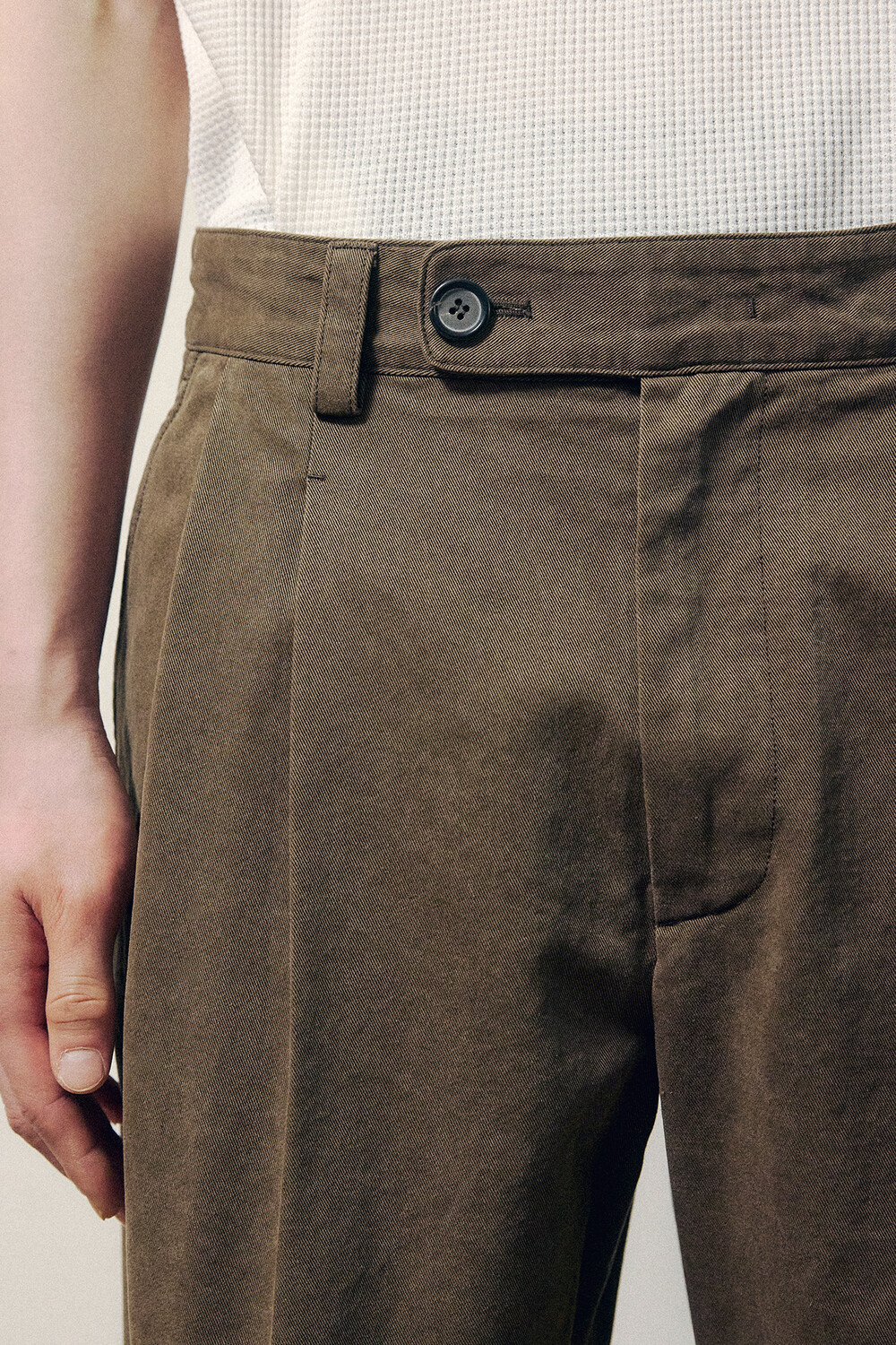 Haku (はく) Dark Brown Cotton Wide Pants / 하쿠 다크 브라운 코튼 와이드 팬츠
