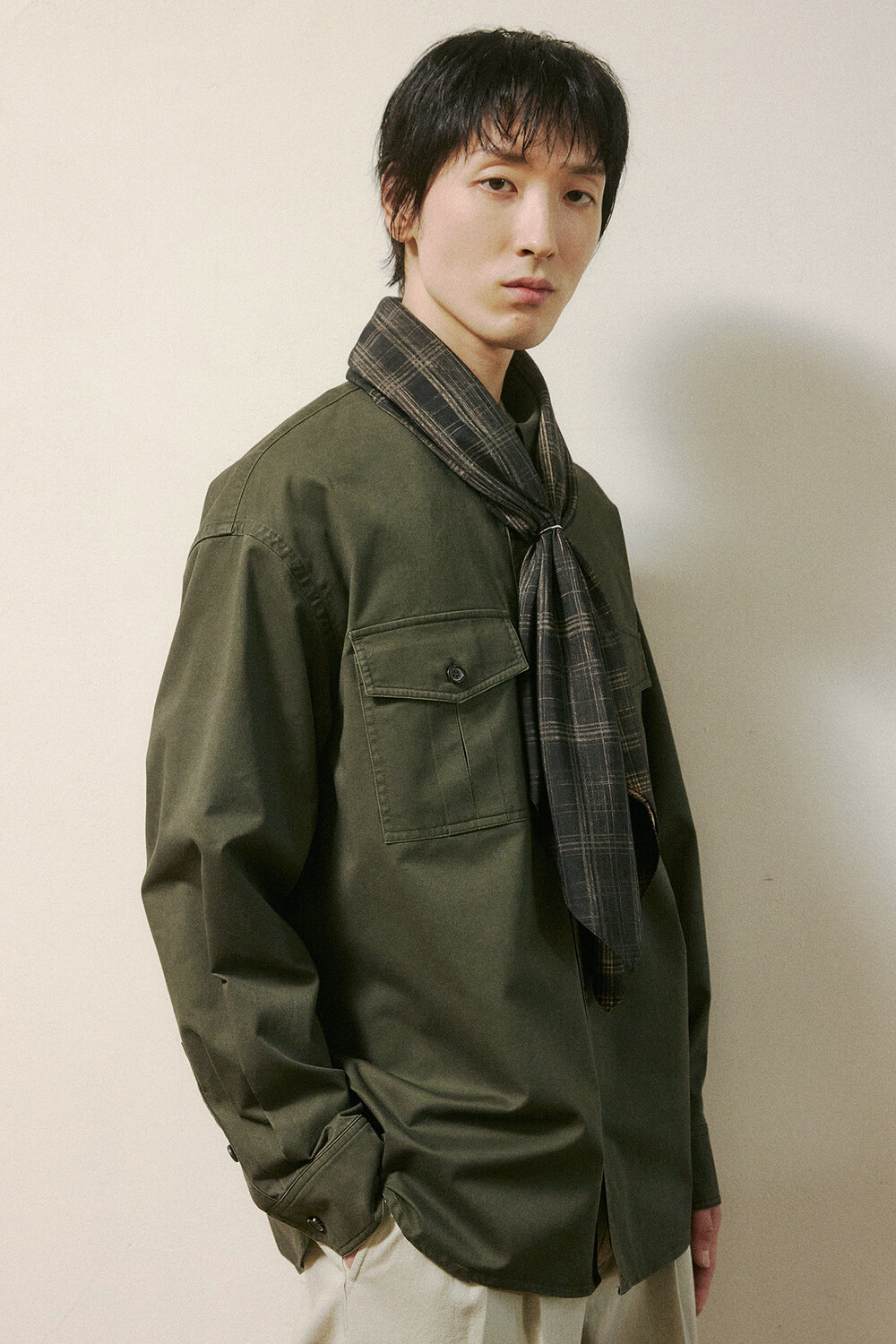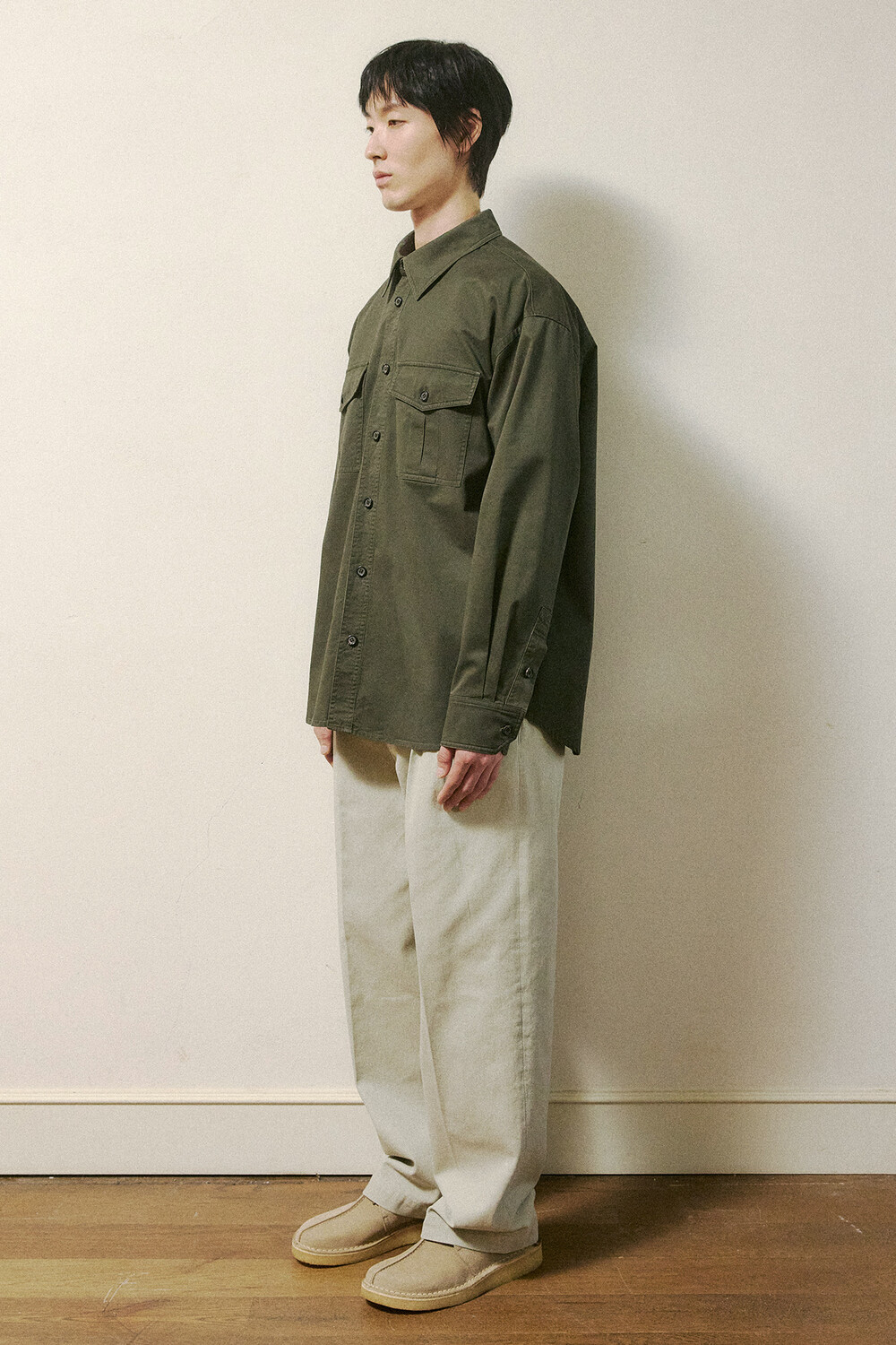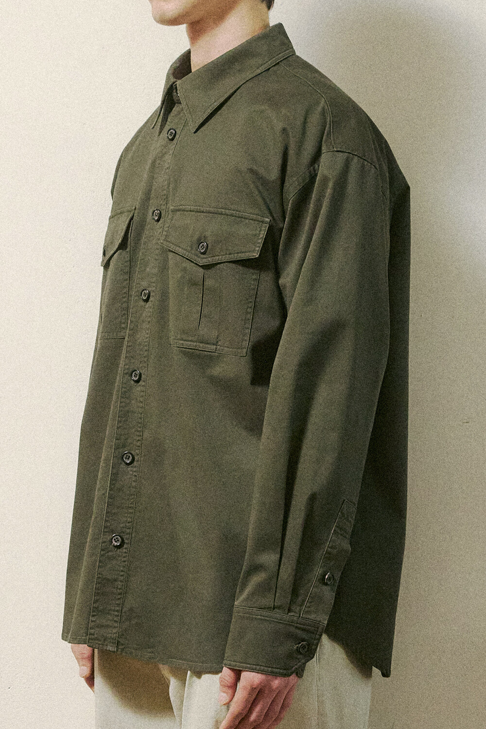 실루엣 특징 | 품이 넓고 오버사이즈한 루즈핏 코튼 카고셔츠.