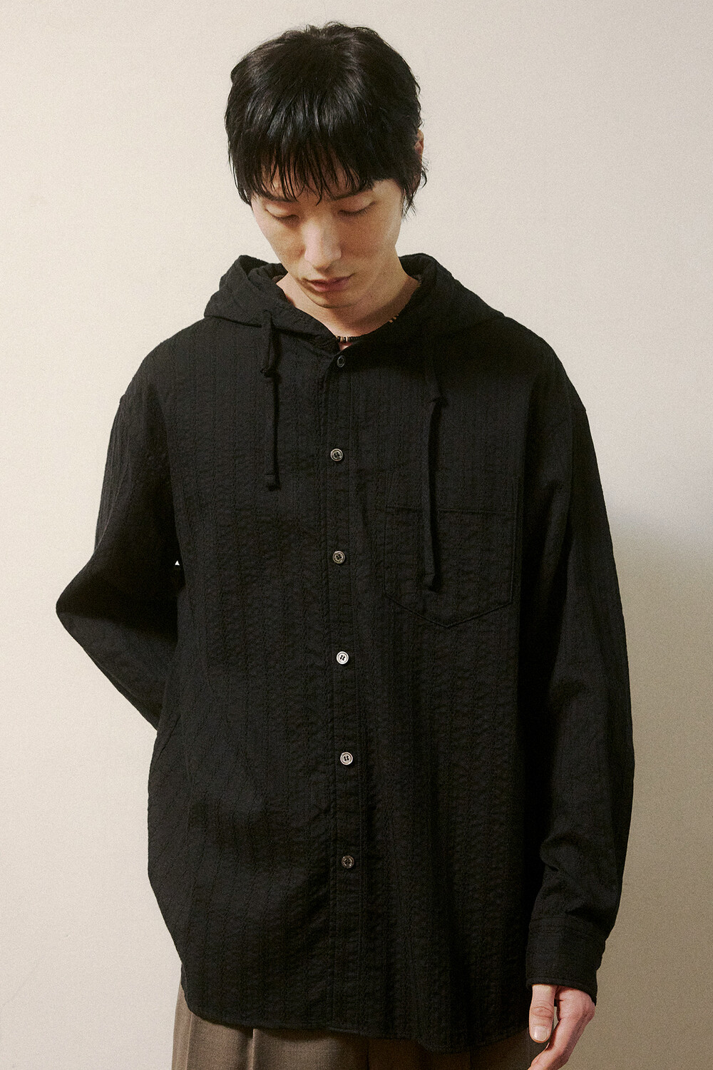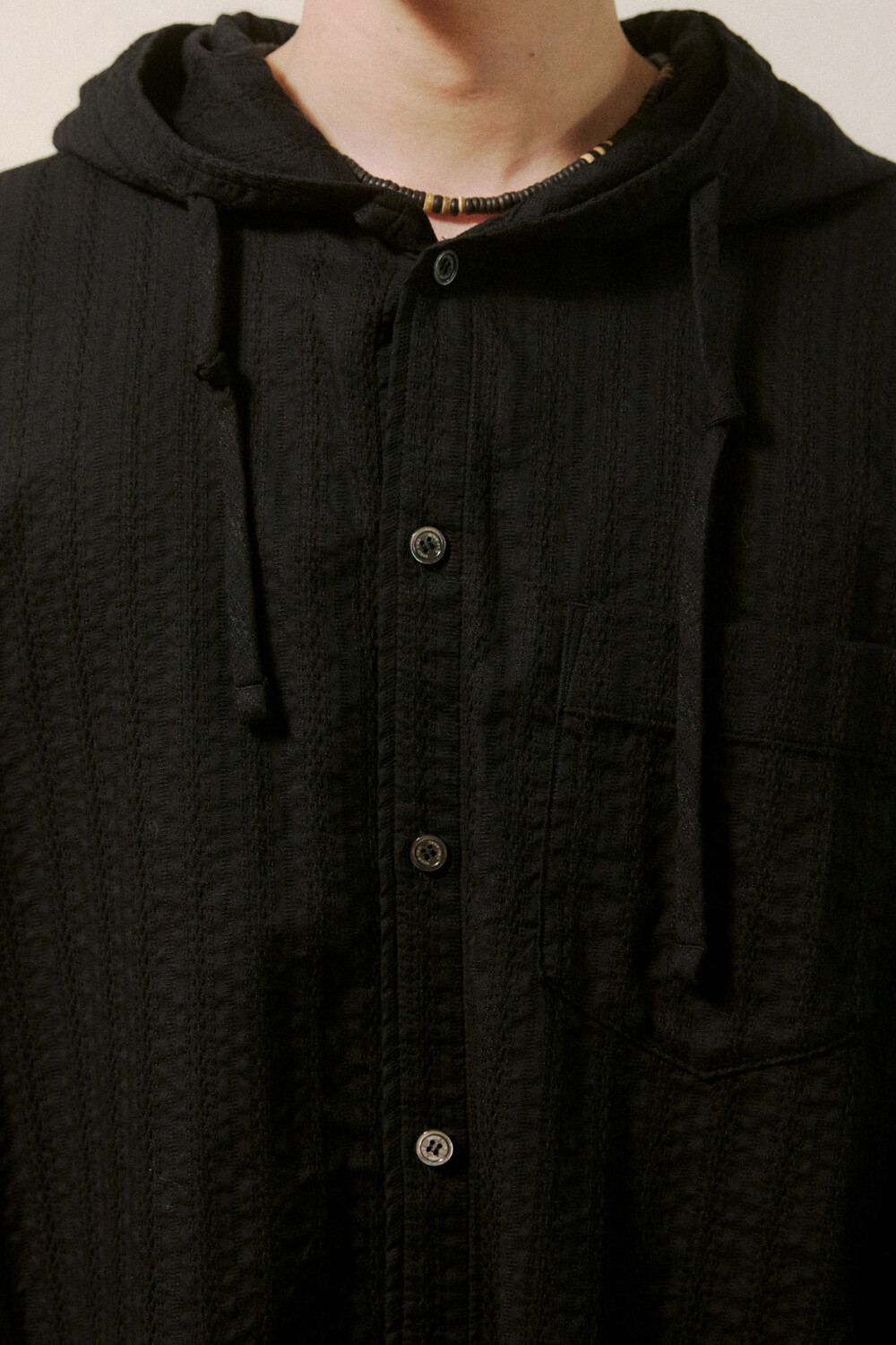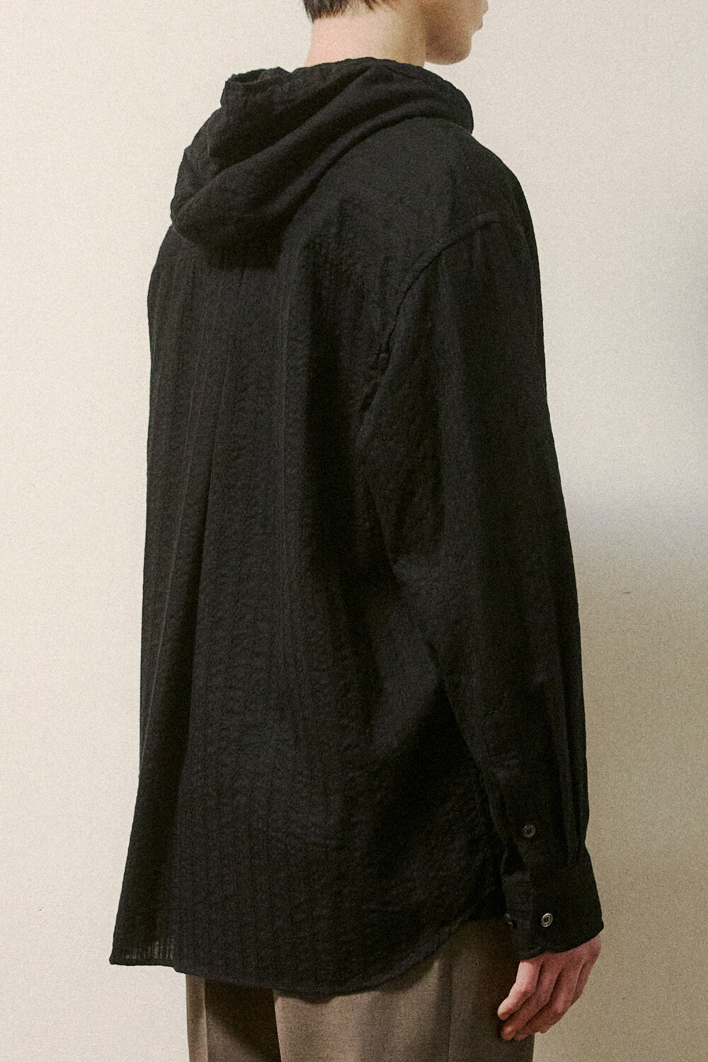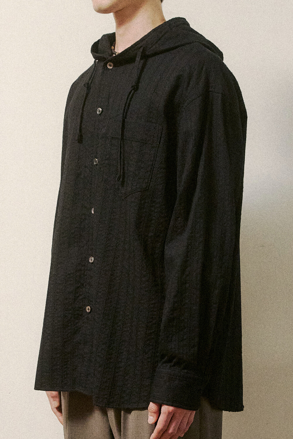 Mori (もり) Black Jacquard Cotton Hooded Shirts / 모리 블랙 자카드 코튼 후디드 셔츠