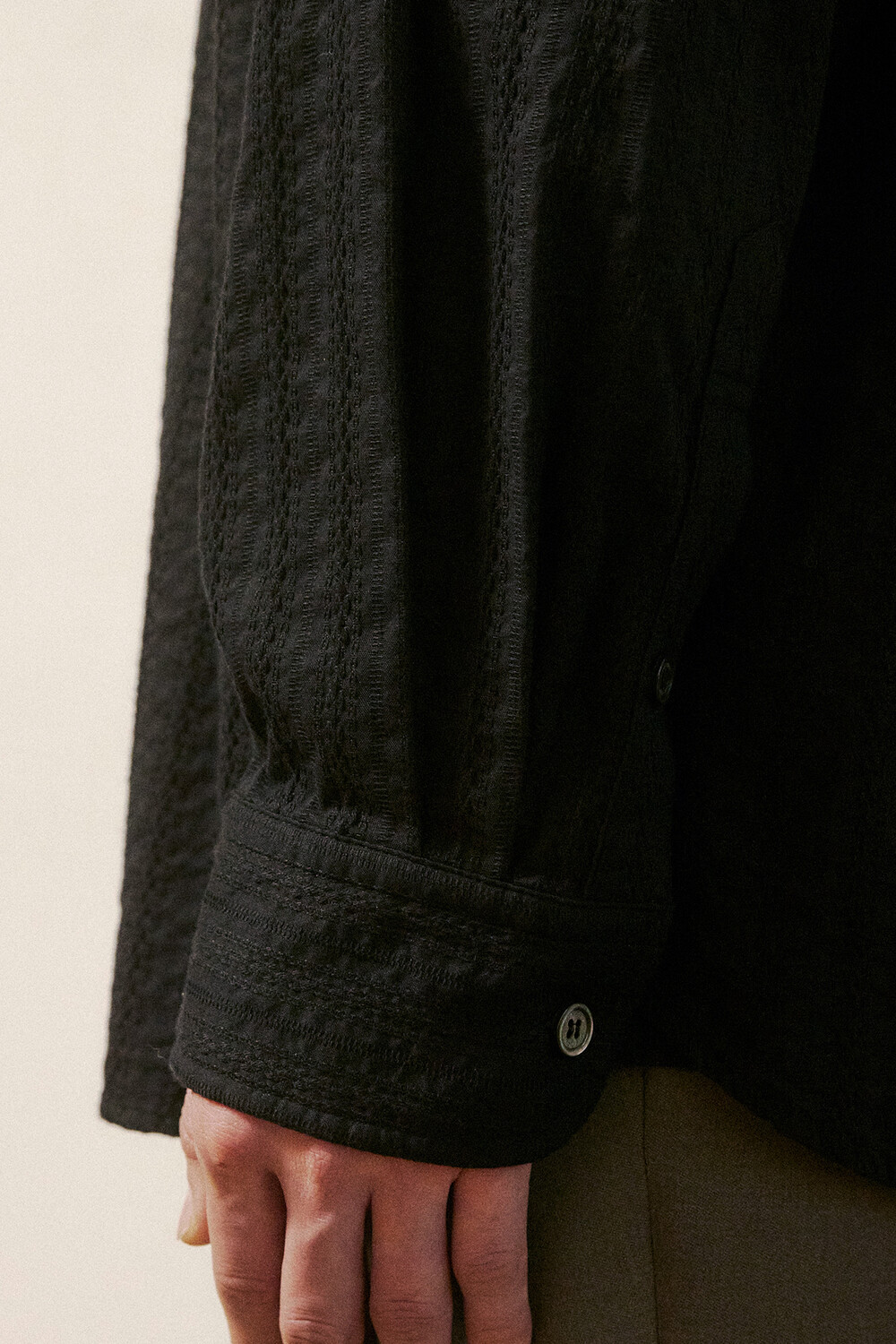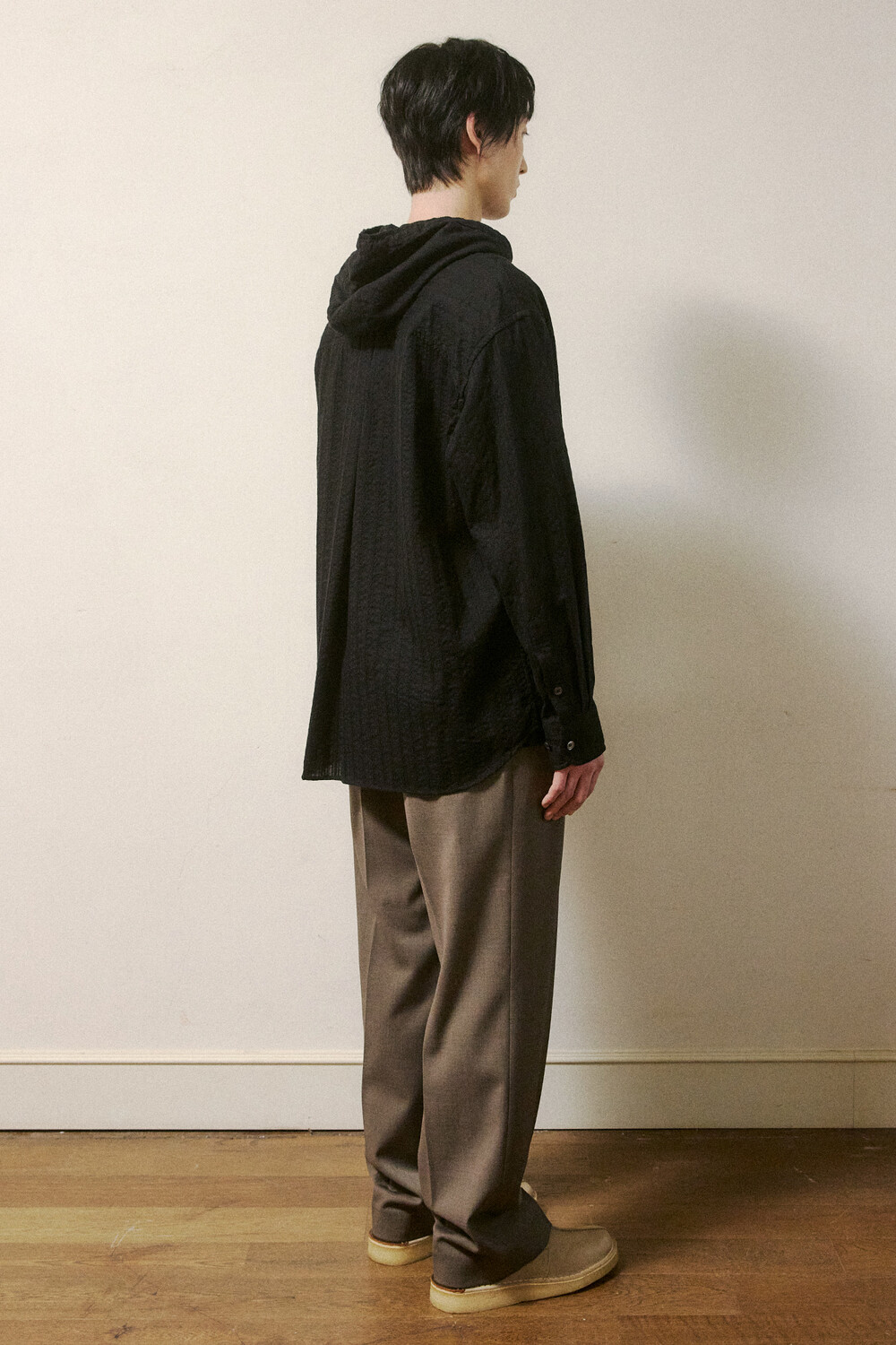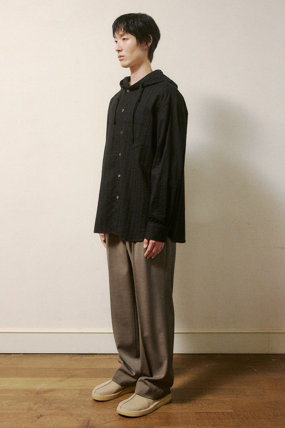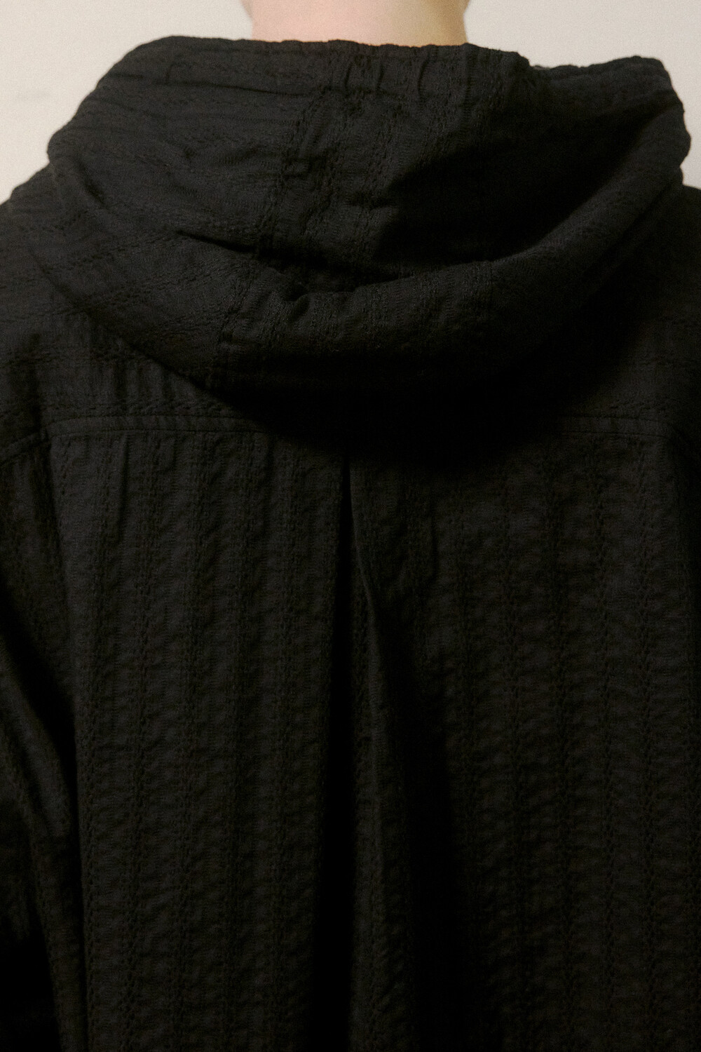 Mori (もり) Black Jacquard Cotton Hooded Shirts / 모리 블랙 자카드 코튼 후디드 셔츠