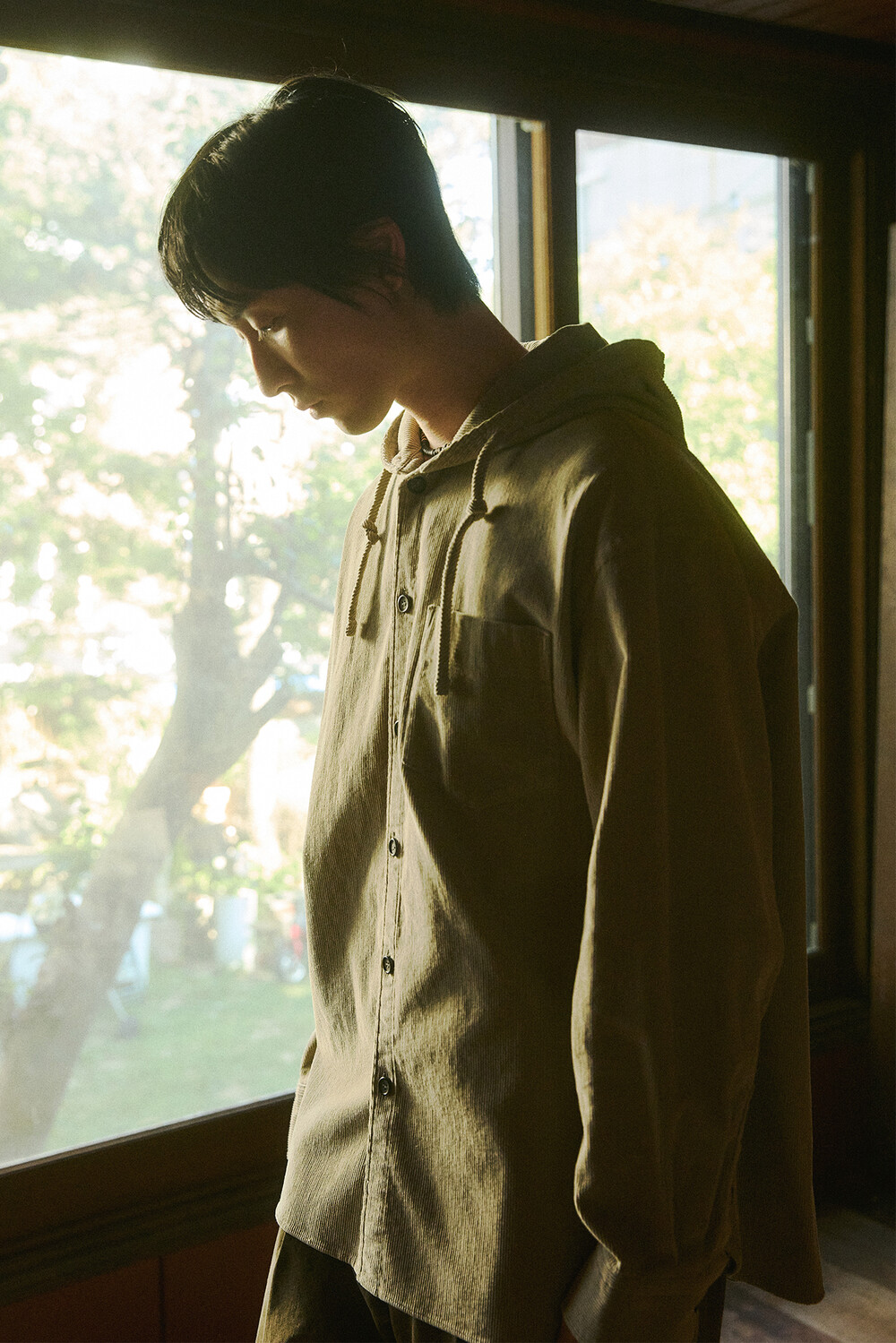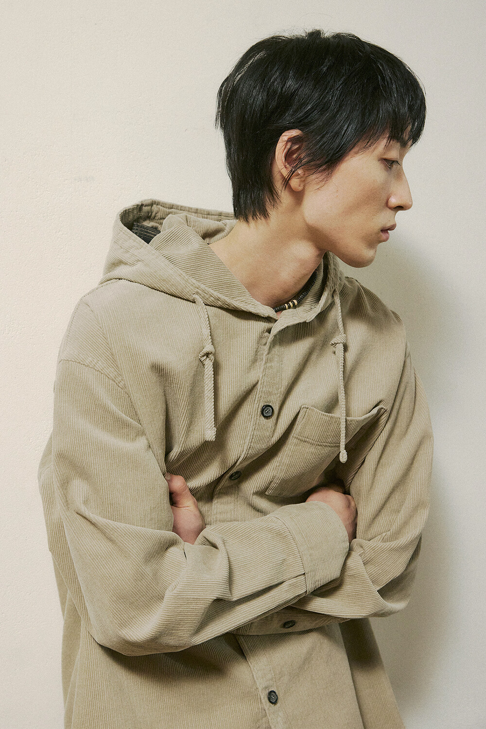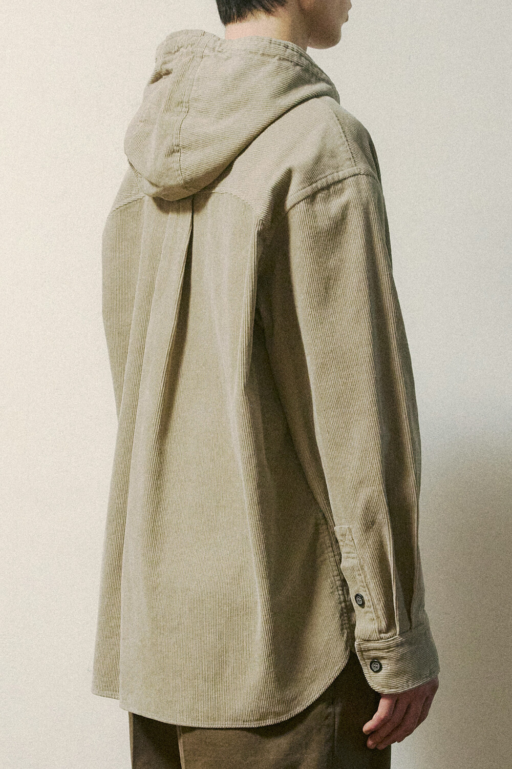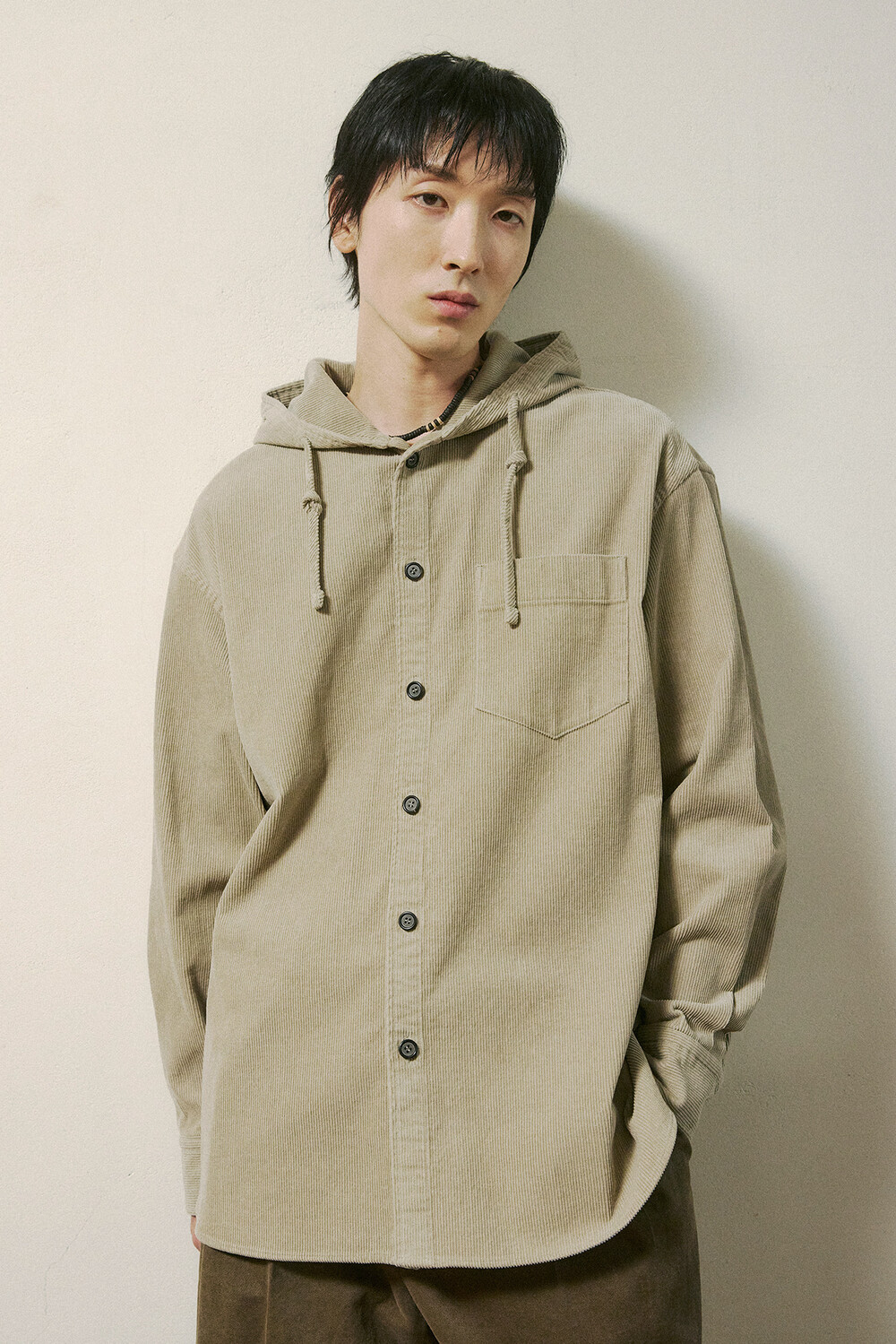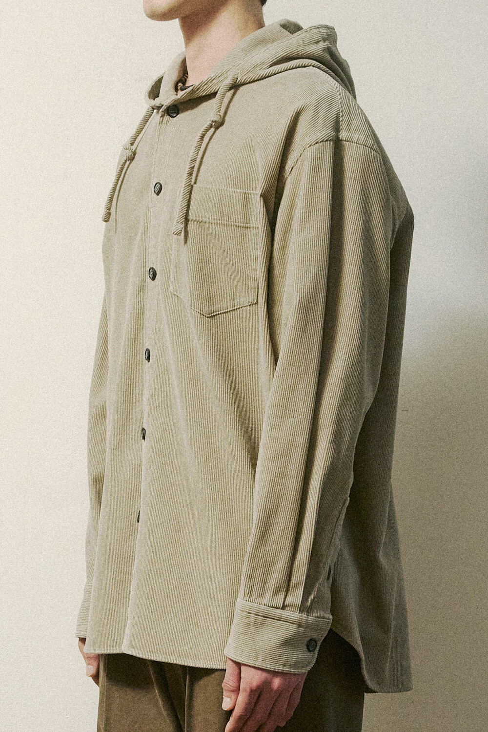 Mori (永遠) Dusty Oatmeal Corduroy Hooded Shirts / 모리 더스티 오트밀 코듀로이 후디드 셔츠