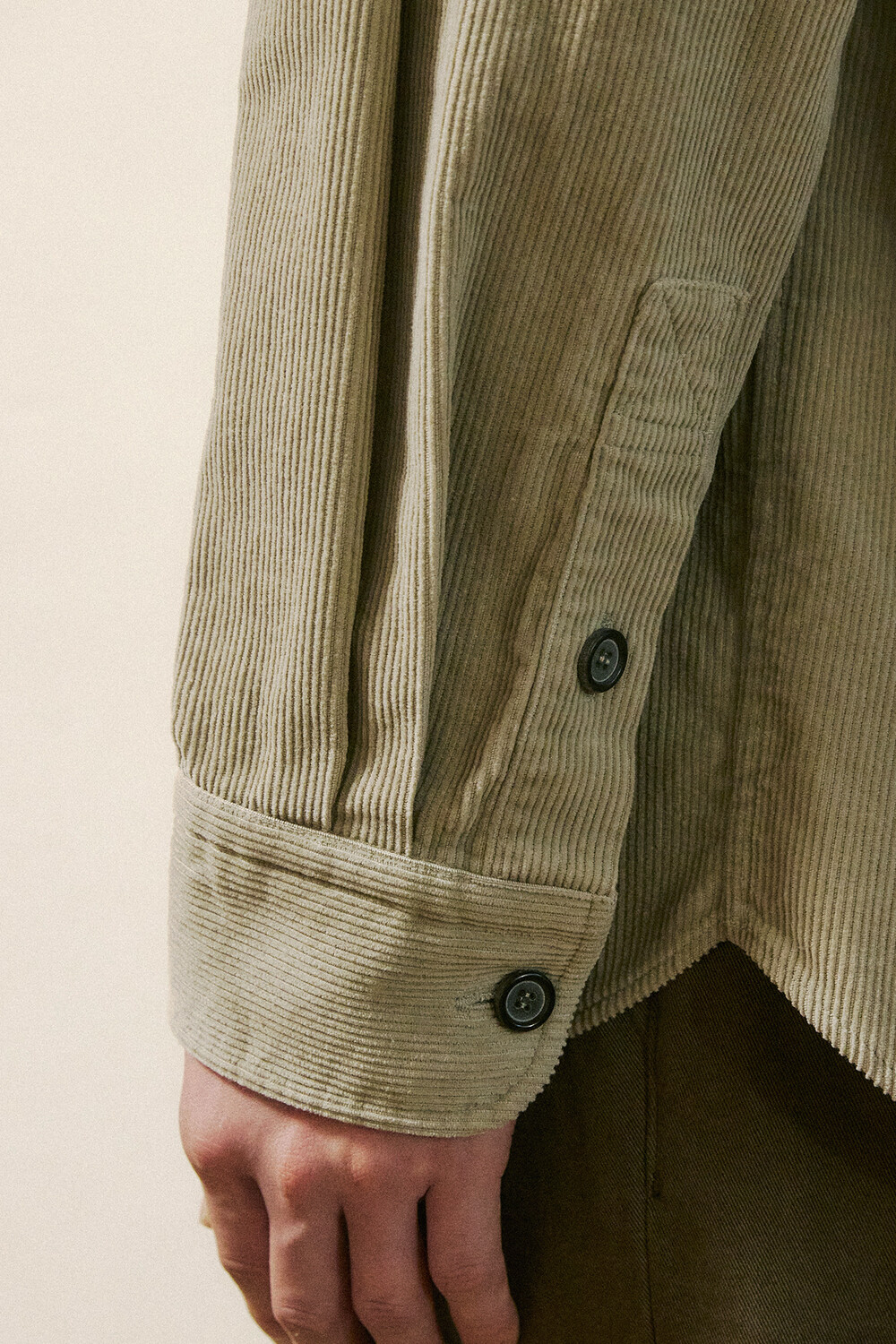 MORI DUSTY OATMEAL CORDUROY HOODED SHIRTS
