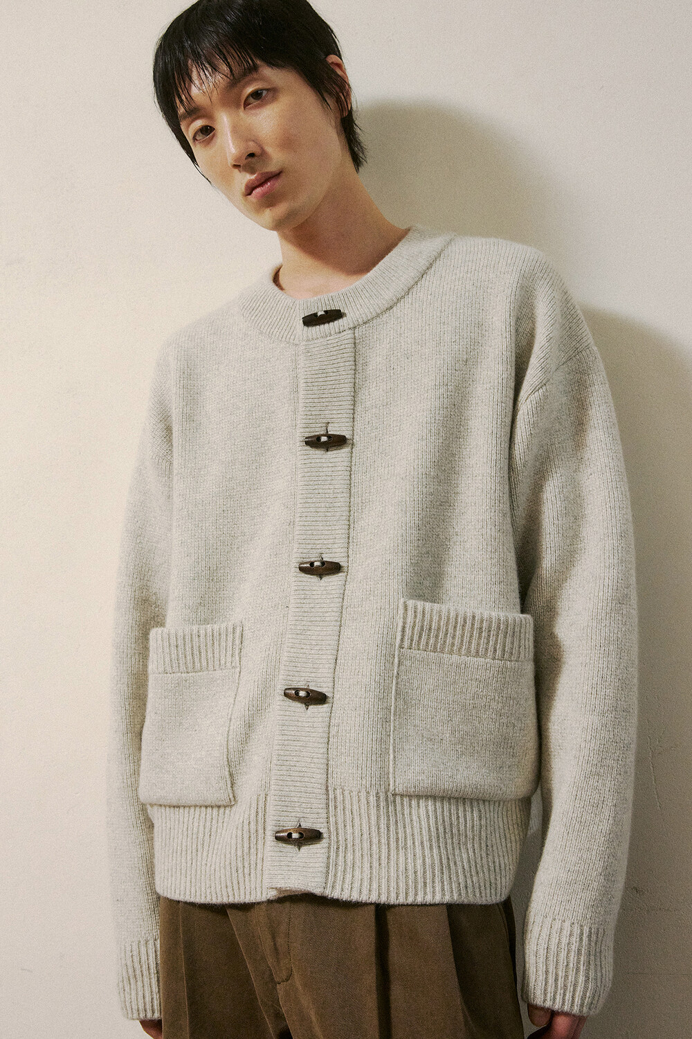 Daso Soft Grey Wool Blend Toggle Knit Cardigan / 다소 소프트 그레이 울 혼방 토글 니트 가디건