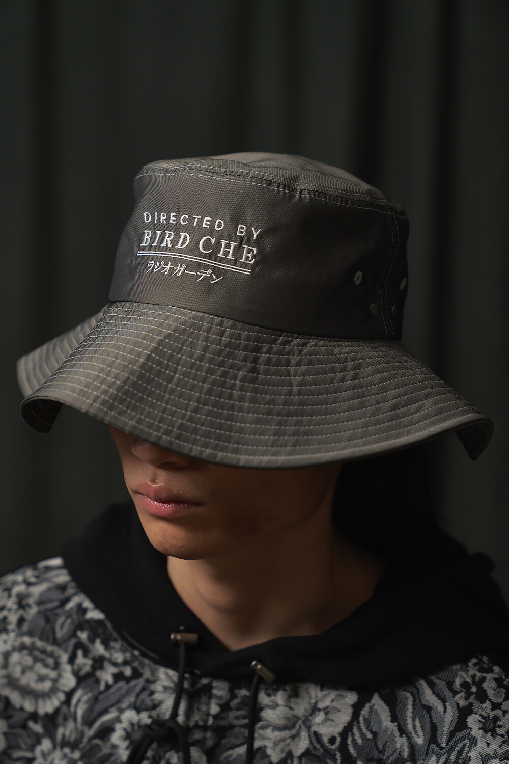 WARM GREY POLYESTER EMBROIDERED BUCKET HAT