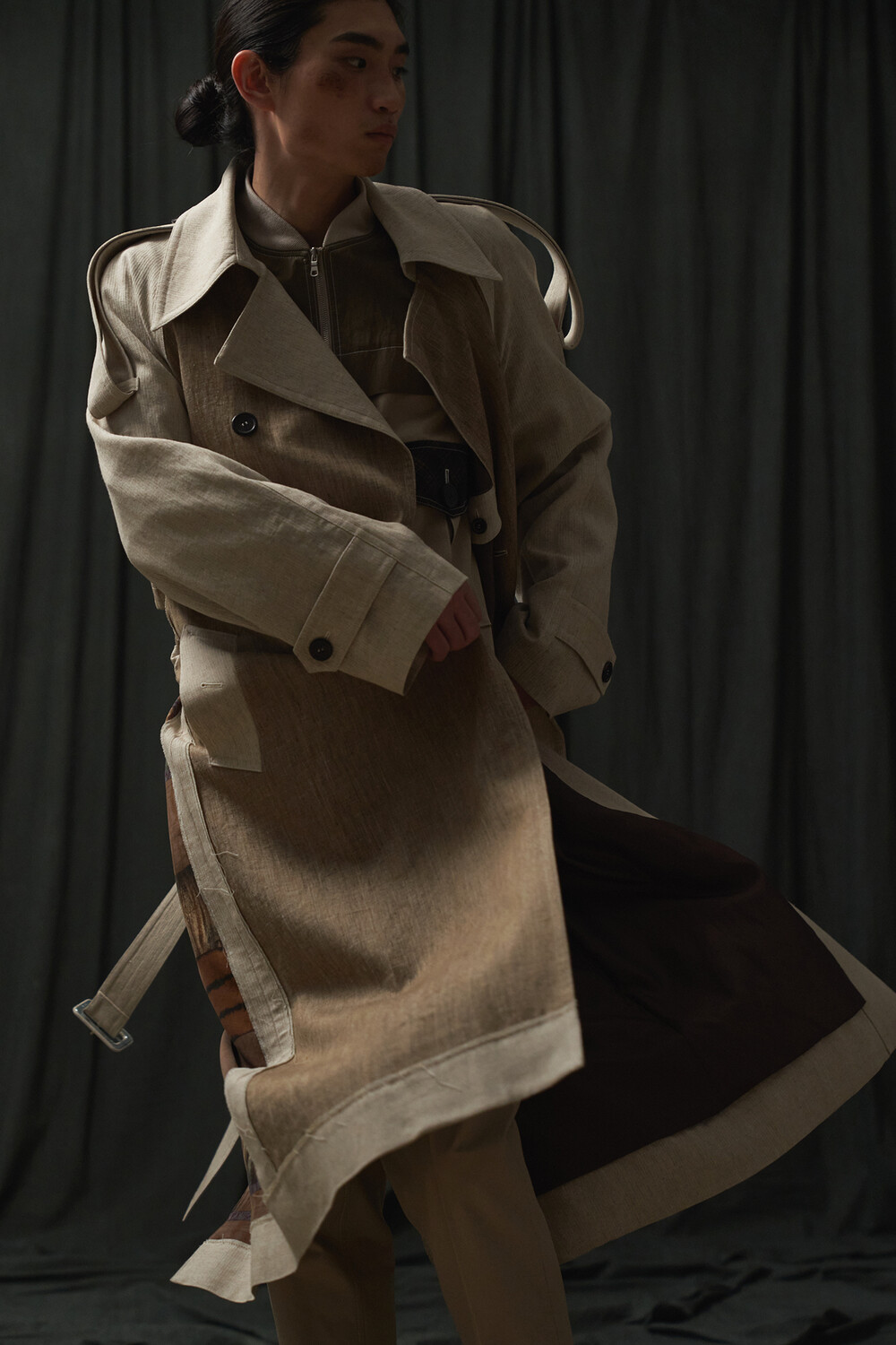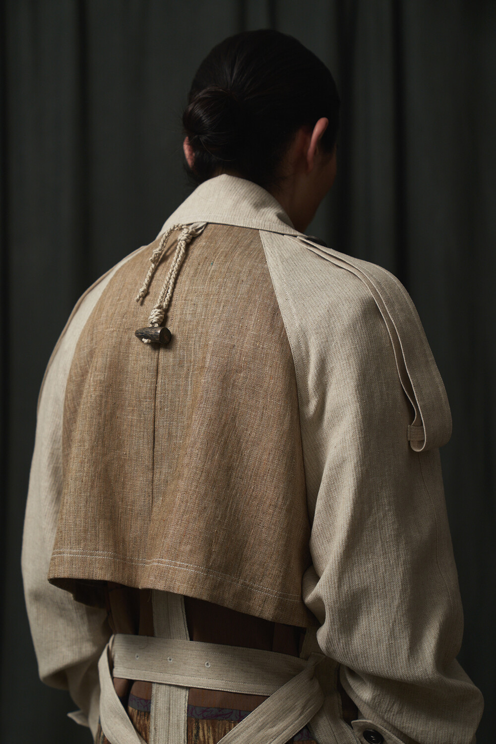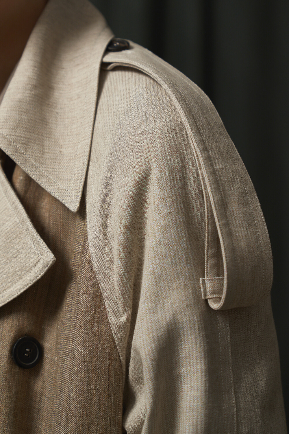 IVORY LINEN DECONSTRUCTED TRENCH COAT