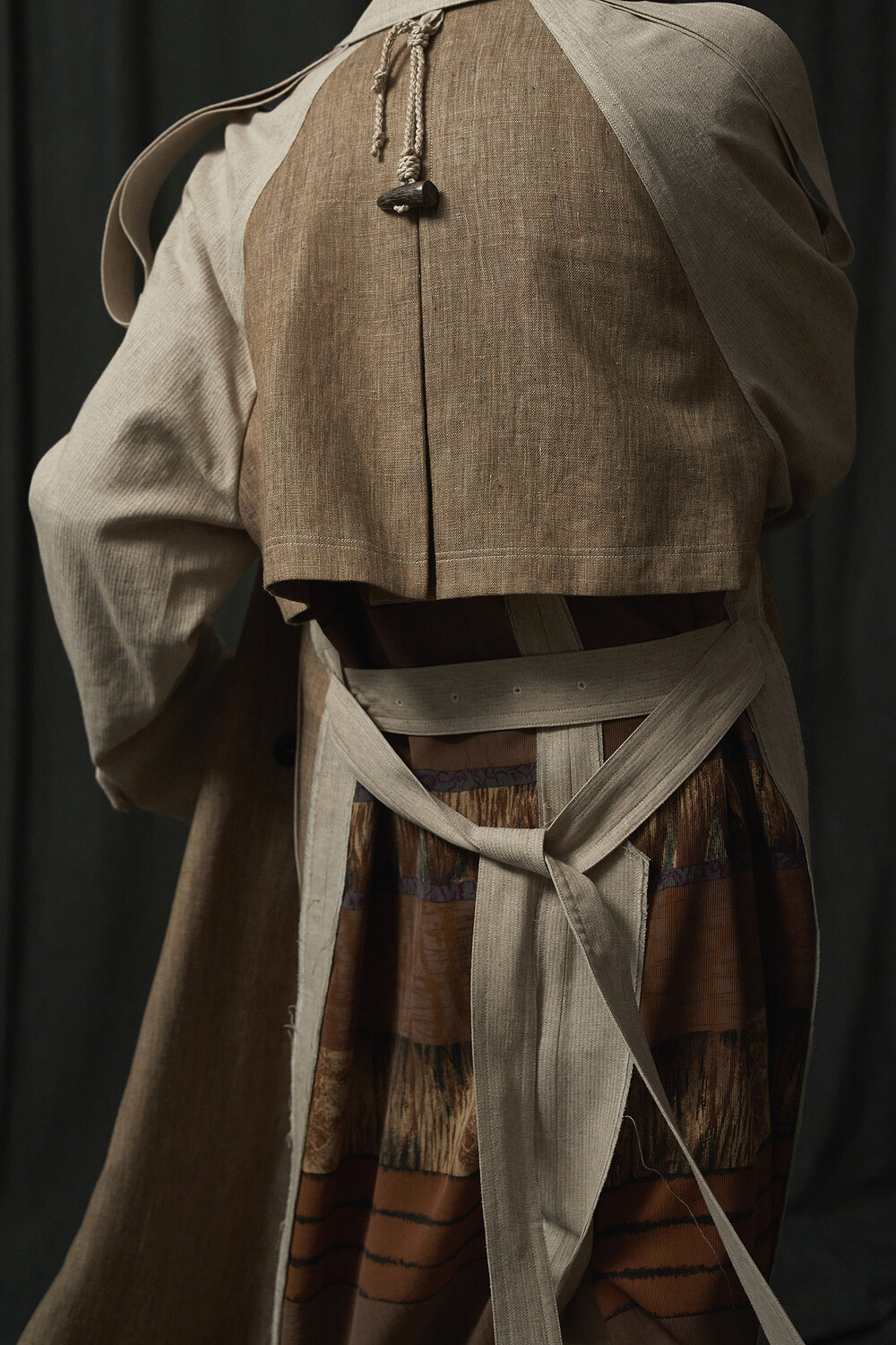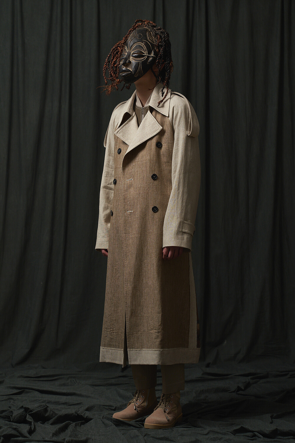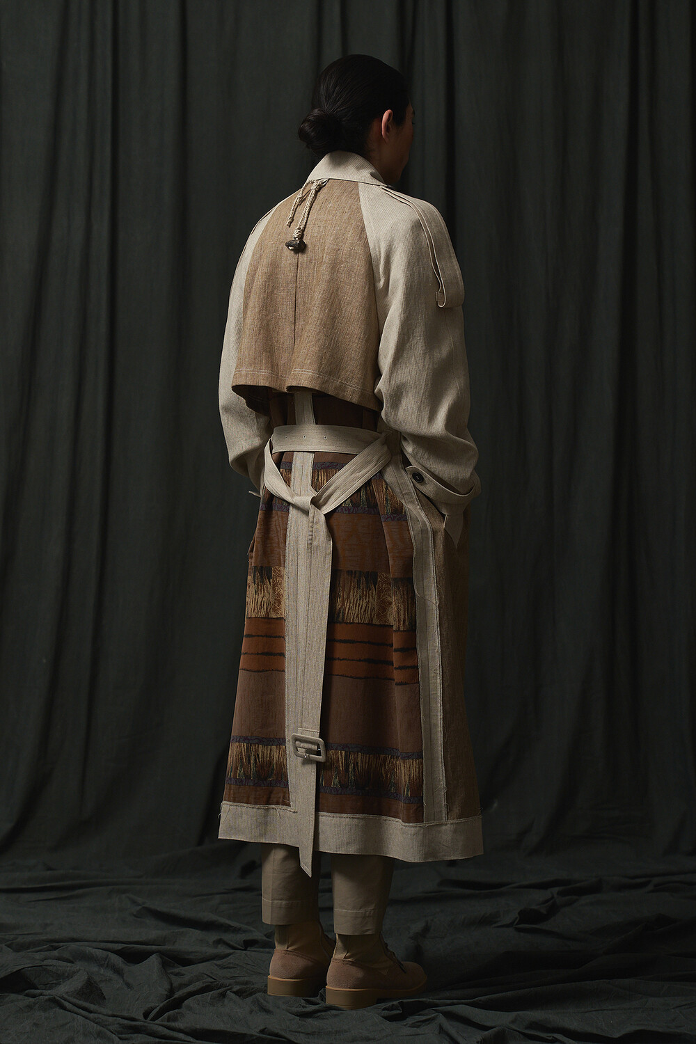 IVORY LINEN DECONSTRUCTED TRENCH COAT