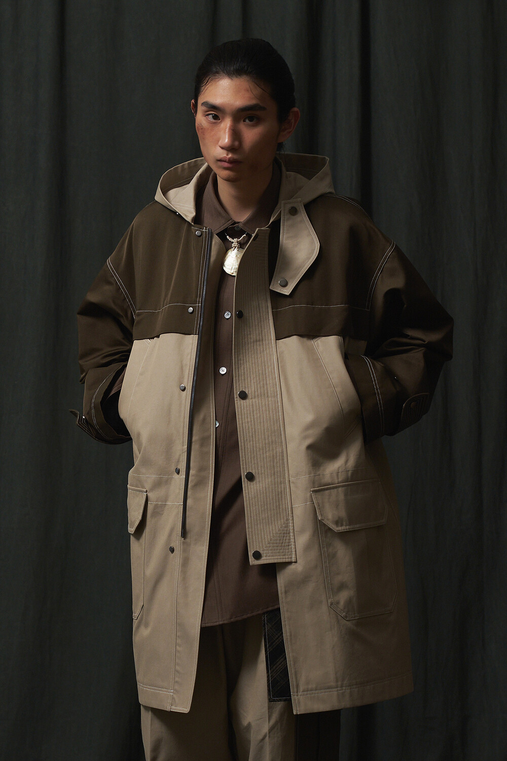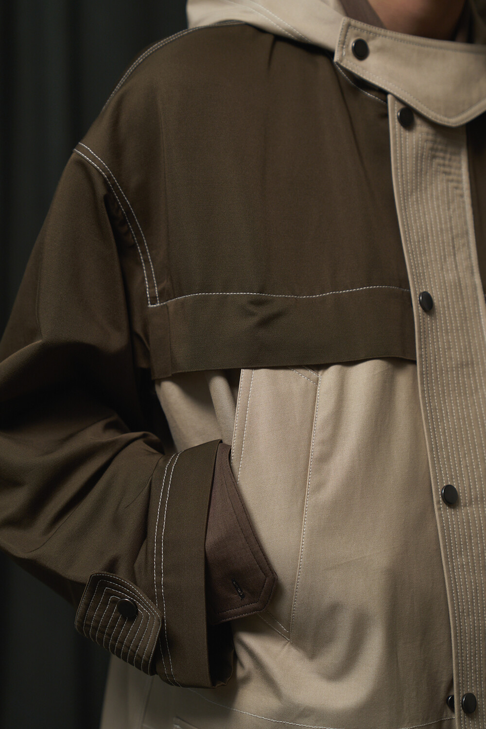 BEIGE COTTON MATCH HOODED FIELD JACKET