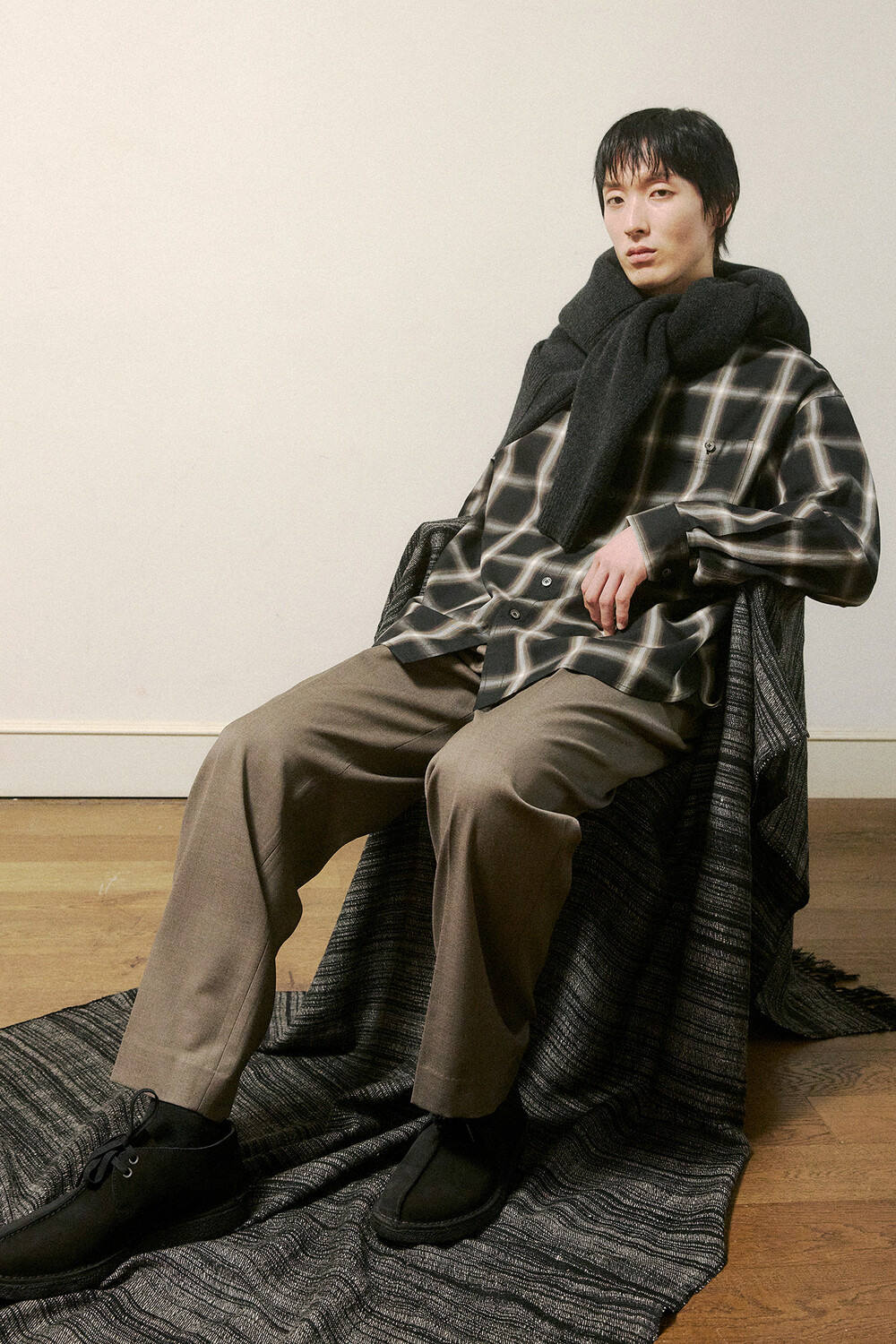 Dawan 다완 울 와이드 팬츠는 ‘다완 (茶碗)’ 이라는 단어에서 착안했습니다. 다완은 차를 마실 때 사용하는 잔이나 사발을 의미하며, 차를 담는 그릇의 형태와 균형감 속에는 차문화 특유의 절제와 여유가 담겨 있습니다. 이 팬츠는 그러한 미학을 바탕으로, 안정감 있는 비율과 편안한 착용감을 갖춘 와이드 실루엣을 구현했습니다. 다완의 넉넉한 곡선이 차를 부드럽게 담아내듯, 착용자의 움직임을 여유롭게 감싸며, 일상 속에서도 단정함과 품격을 유지할 수 있도록 디자인되었습니다.
