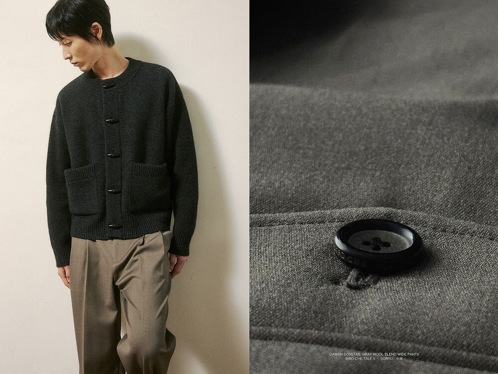 Dawan (茶碗) Dovetail Gray Wool Blend Wide Pants · 다완 도브테일 그레이 울 블랜드 와이드 팬츠