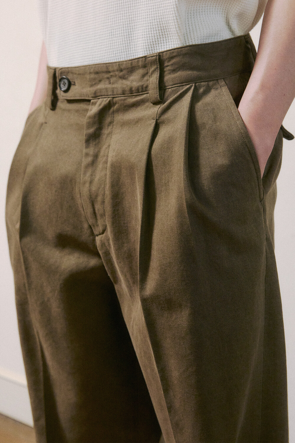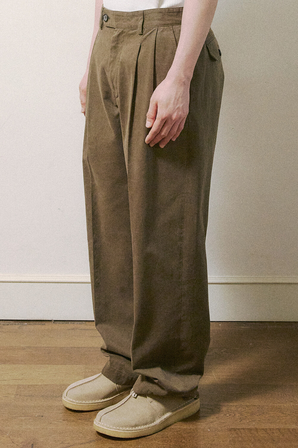 하쿠 (はく) 팬츠는 컬러 무드와 실루엣에 중점을 두어 제작된 아이템입니다. 편안한 바지통과 적당한 기장감을 유지하면서 지나치게 넓지 않도록 조율했습니다. 전체적인 와이드한 분위기를 살리되, 밑단을 접거나 자연스럽게 고여도 어색하지 않도록 패턴을 다듬은 것이 특징입니다.