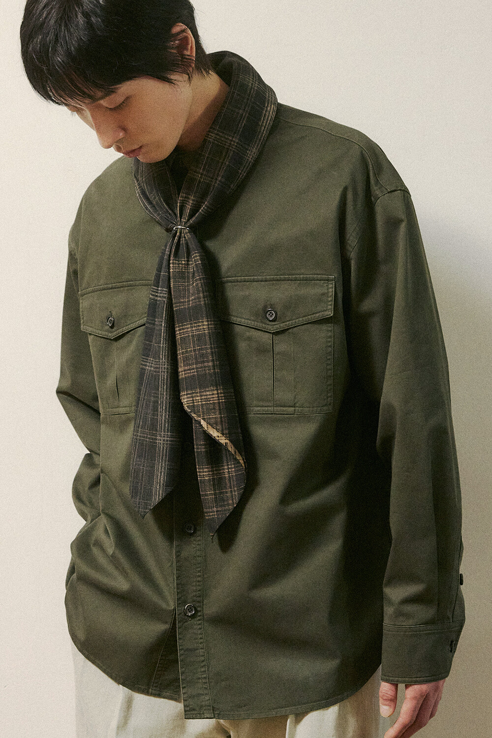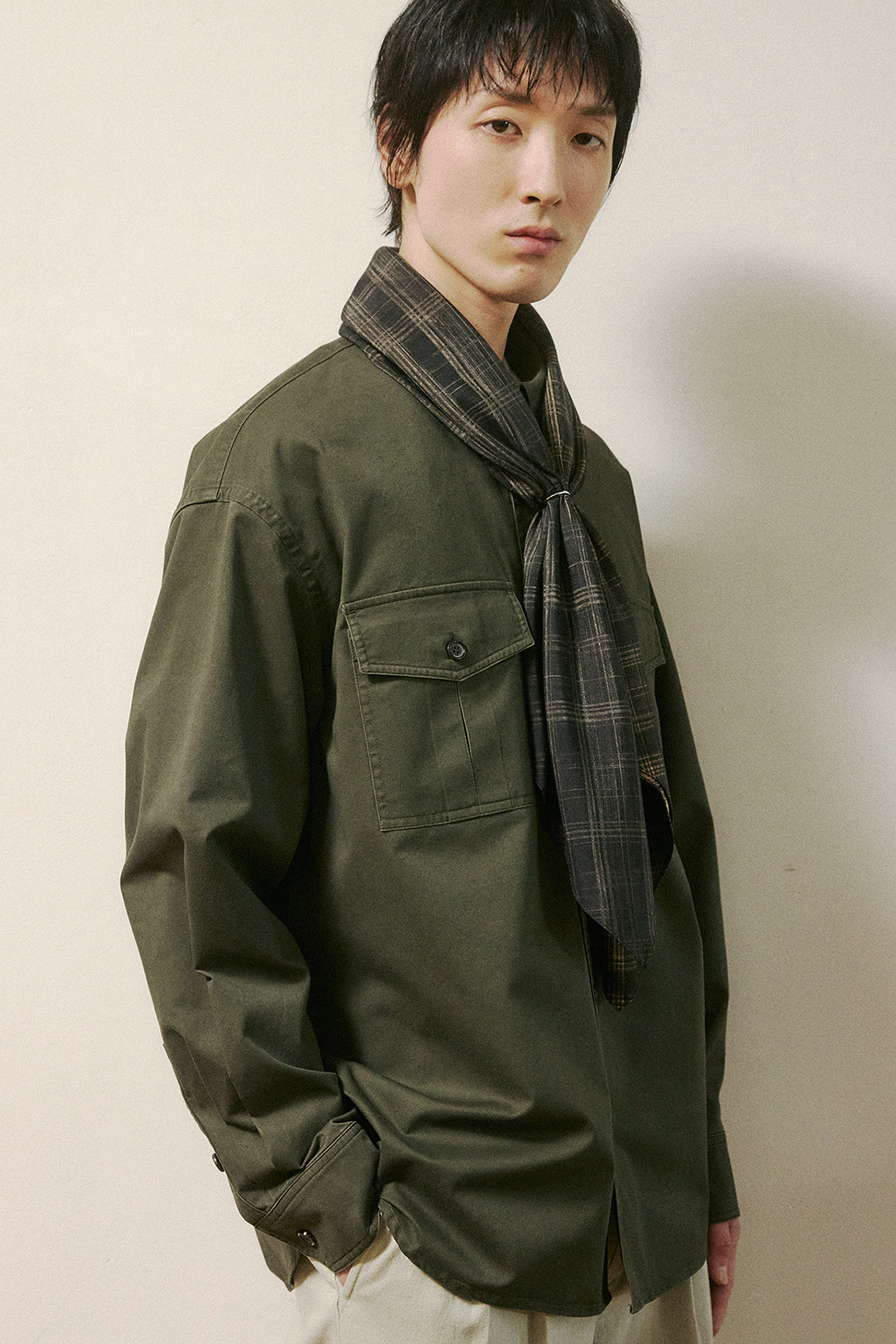 실루엣 특징 | 품이 넓고 오버사이즈한 루즈핏 코튼 카고셔츠.