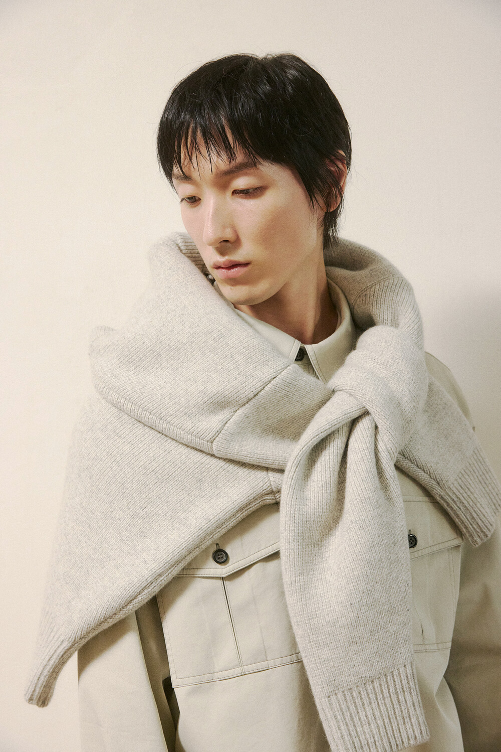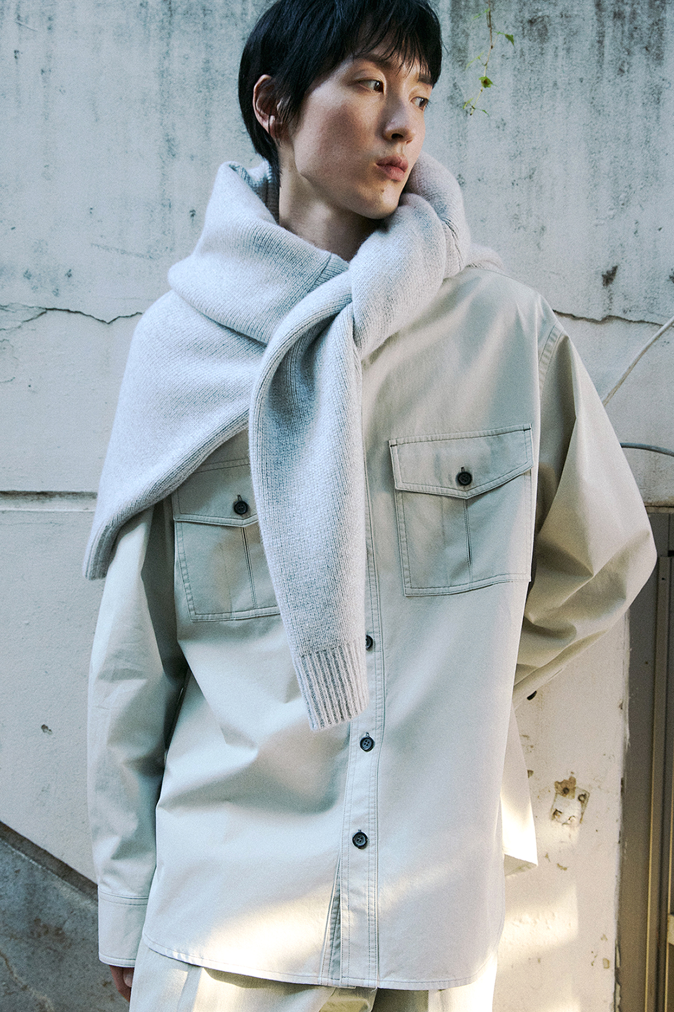Towa 토와 카고셔츠는 썰파 염료로 염색한 캐티오닉 코튼을 사용해 입을수록 특별한 변화를 담아내는 아이템입니다. 마찰과 사용감에 따라 원단의 표면이 점차 자연스럽게 데미지가 되어, 시간이 지날수록 빈티지한 무드가 짙어집니다. 이는 단순히 낡음이 아닌, 착용자의 라이프스타일이 스며든 흔적으로서 의미를 갖는 제품이 되도록 기획했습니다. 두 차례의 워싱 가공을 거쳐 원단의 뻣뻣함을 줄이고 은은한 질감을 완성했으며, 빈티지한 컬러감 속에 자연스러운 무드가 살아나도록 제작했습니다.