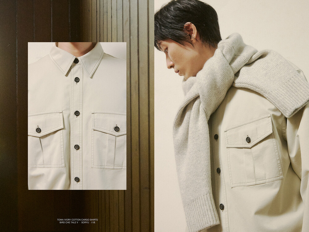 Towa 토와 카고셔츠는 永遠 (영원) 라는 단어에서 착안한 이름처럼, 시간이 흐르며 더욱 깊은 매력을 드러내는 셔츠입니다. 캐티오닉 코튼 소재를 사용해 제작되어, 착용자의 움직임과 생활 속 마찰에 따라 표면에 독특한 빈티지 질감과 자연스러운 워싱이 형성됩니다. 초기의 단정한 질감에서 시작해, 시간이 지남에 따라 각각의 질감과 색감으로 변화하는 이 소재 특성은 끊임없이 흐르면서도 고요히 머무는, Towa의 의미를 담고 있습니다