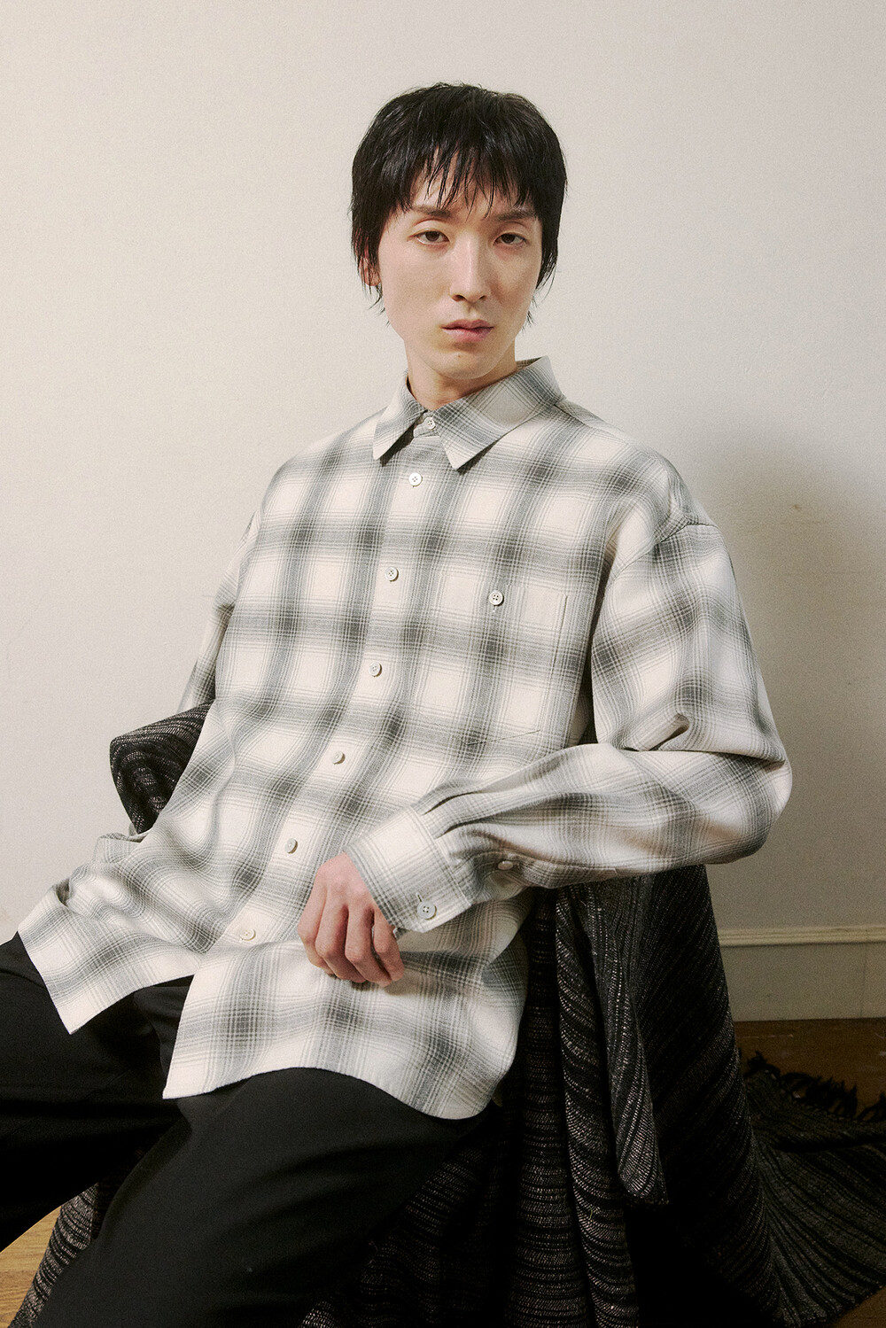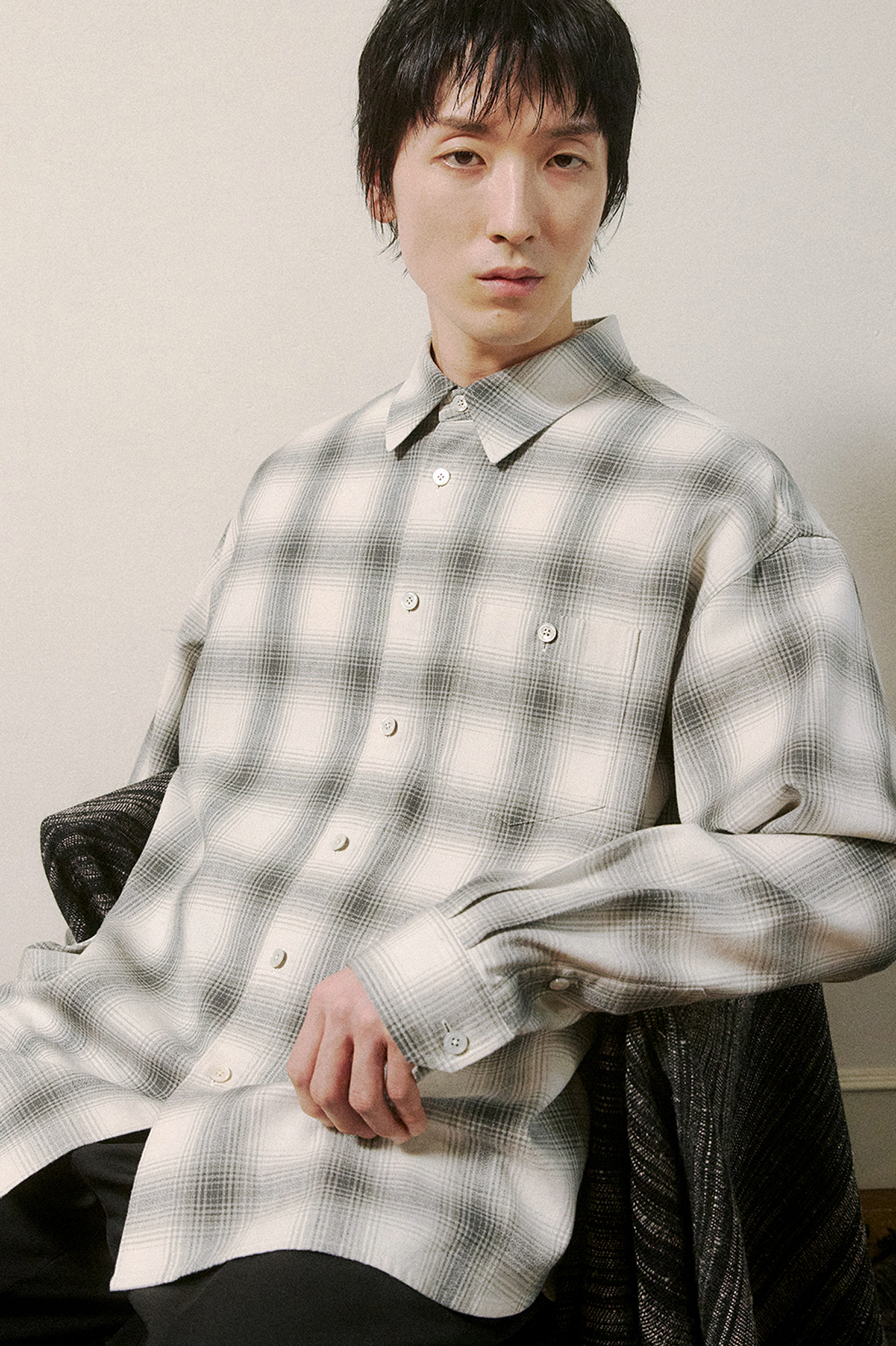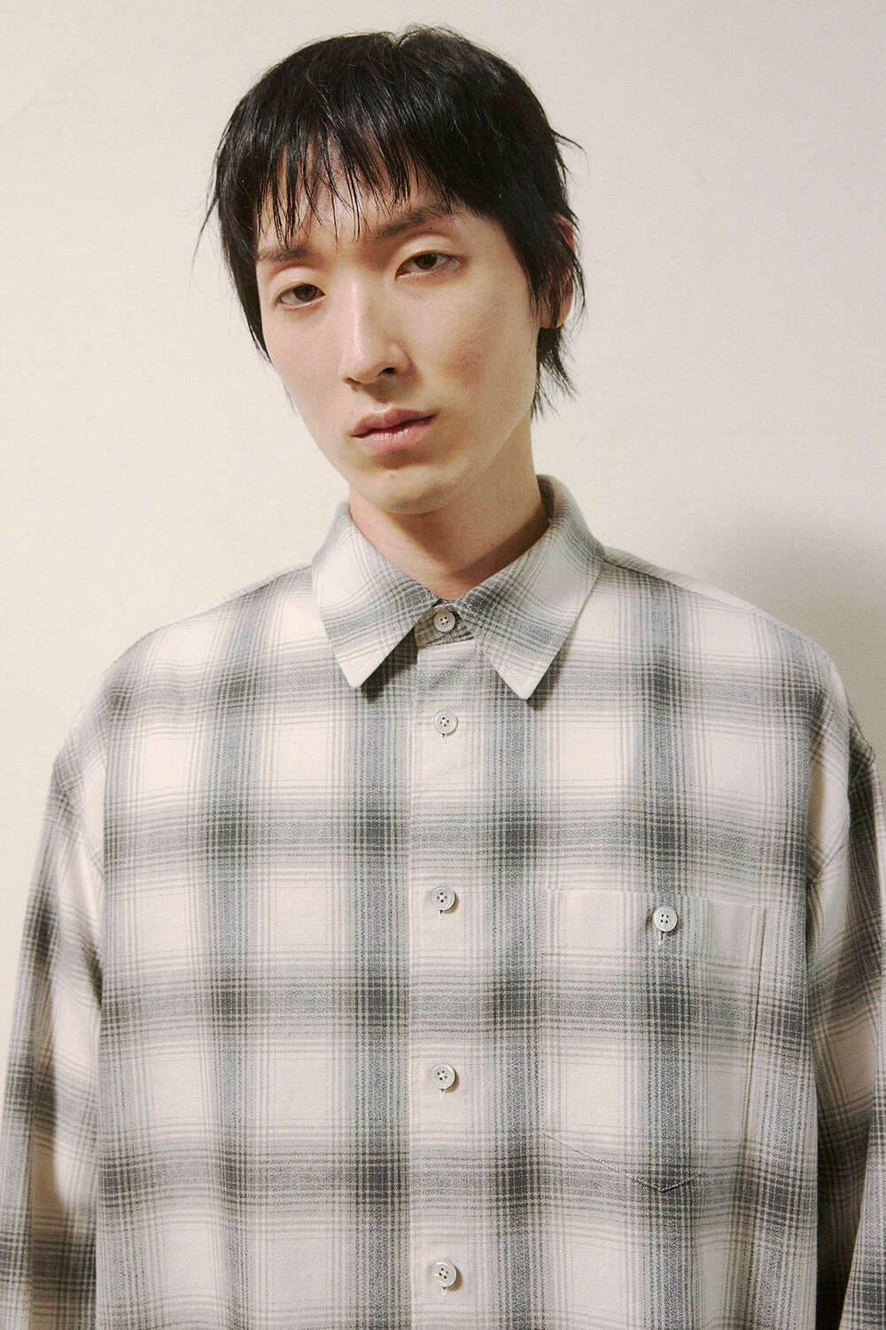 Haje (하제) Light Grey Check Cotton Shirts · 하제 라이트그레이 체크 코튼셔츠
