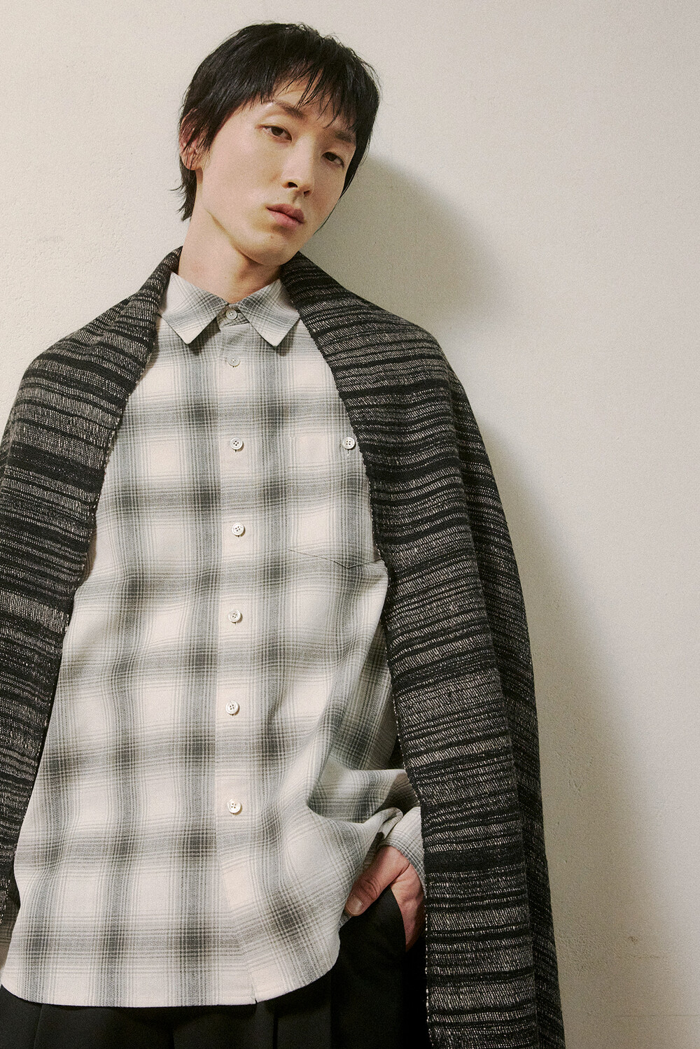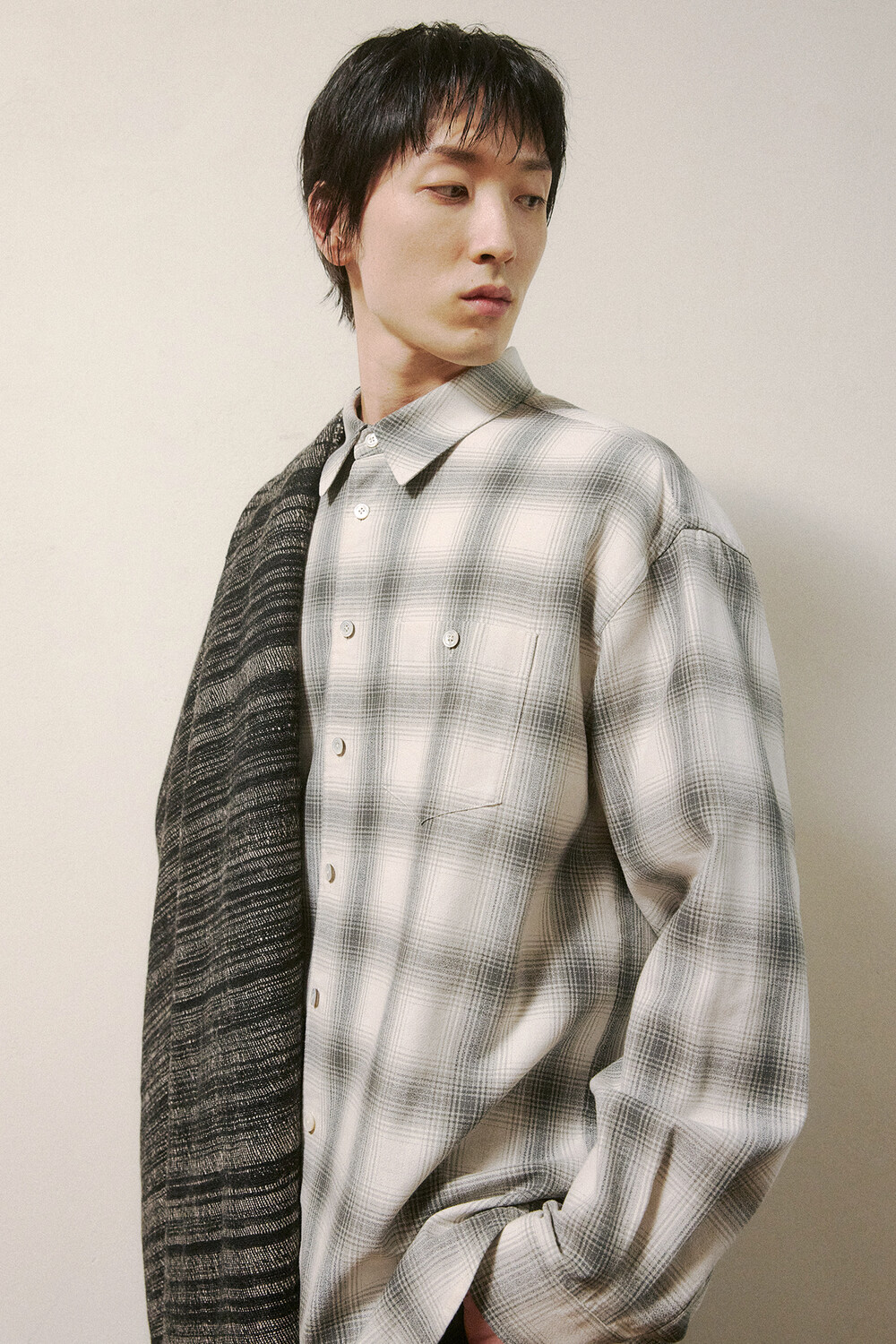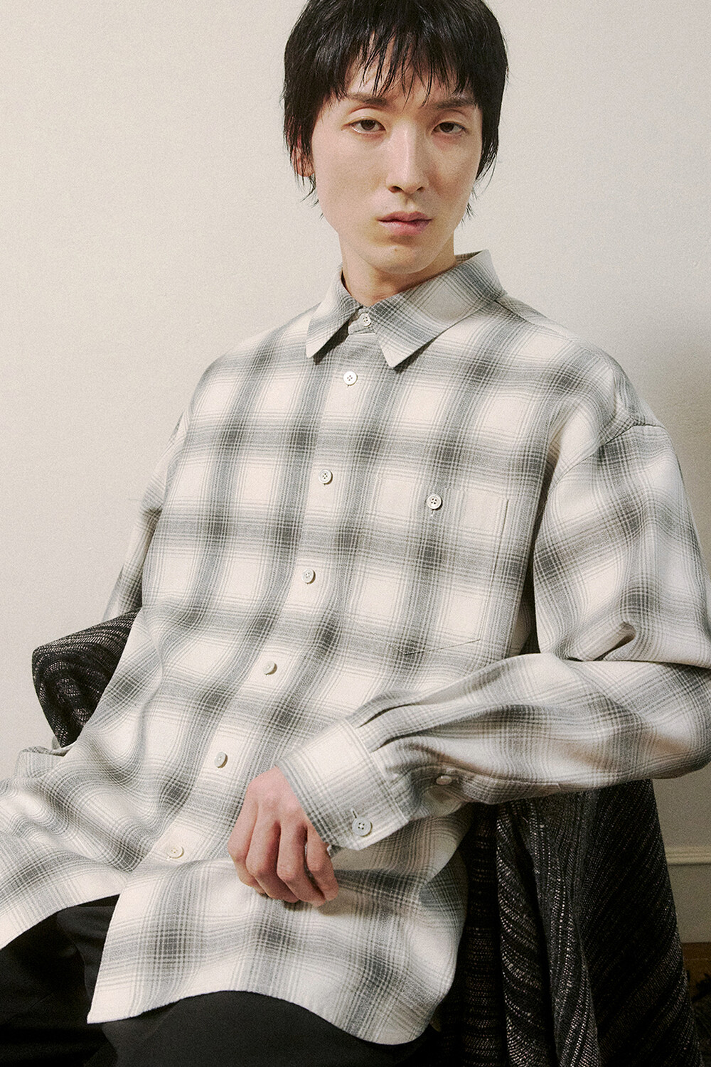 Haje (하제) Light Grey Check Cotton Shirts · 하제 라이트그레이 체크 코튼셔츠