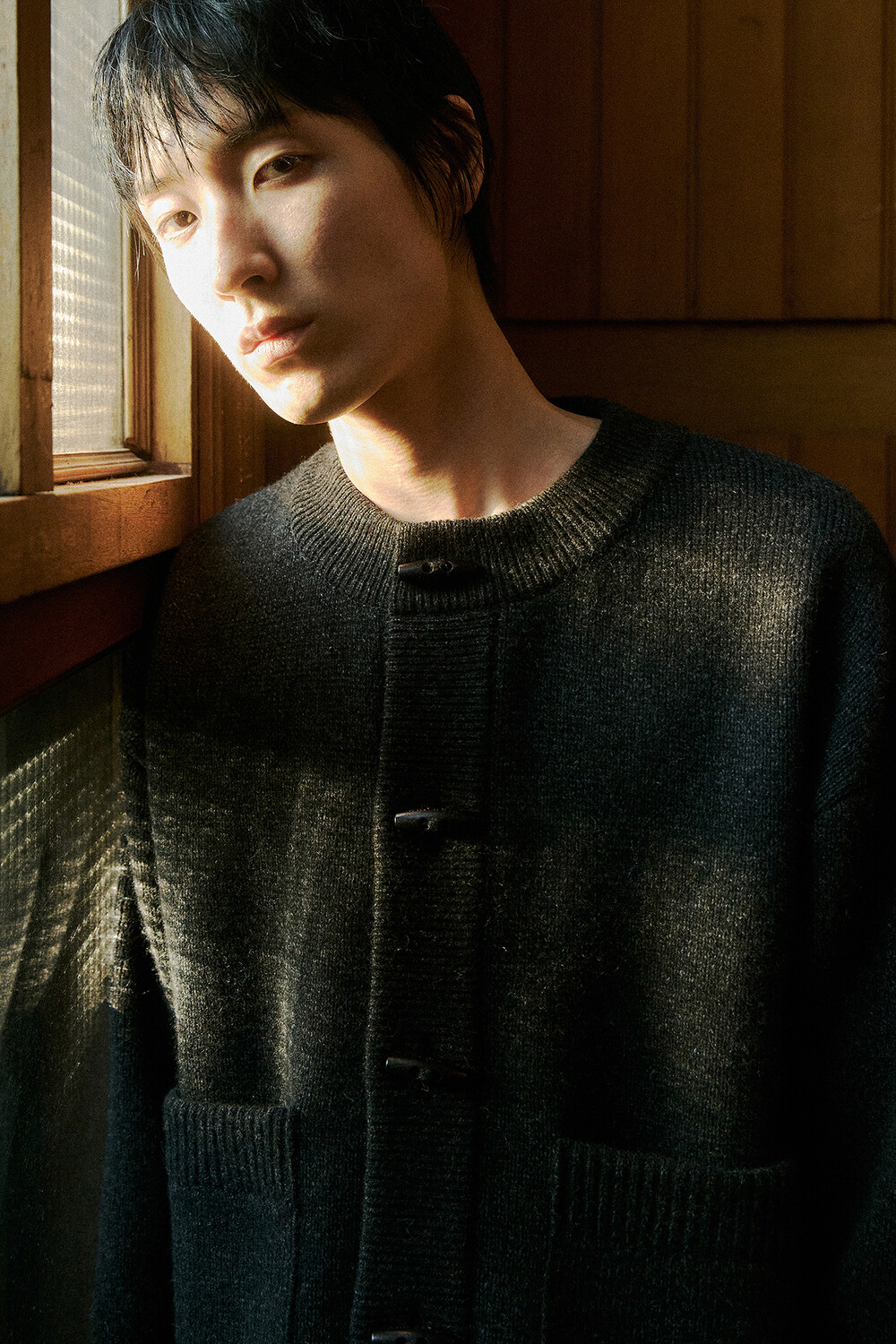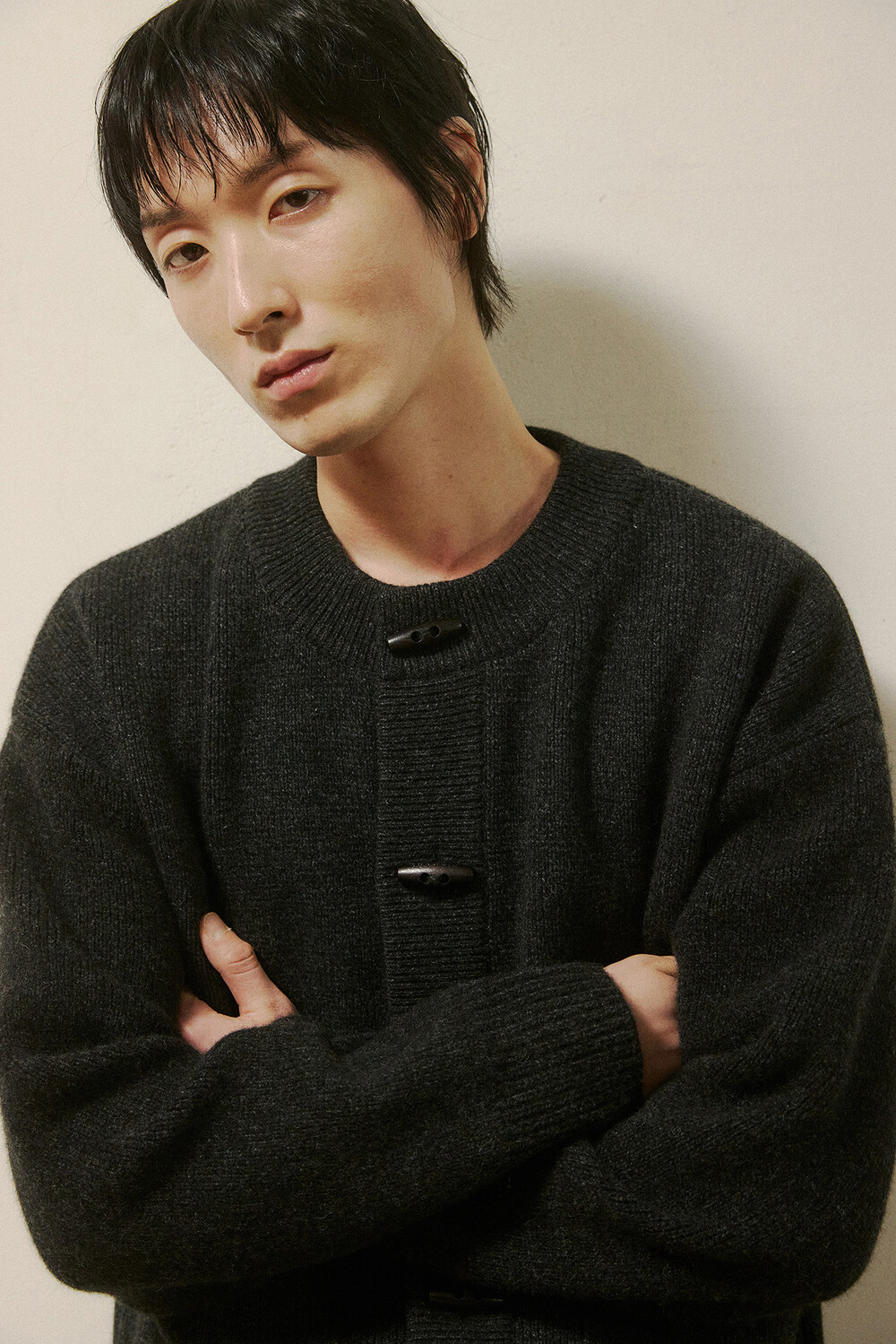 고급 메리노 울 & 폴리아미드, 라쿤, 캐시미어를 혼방하여 부드러운 촉감과 뛰어난 보온성을 모두 갖췄고, 5게이지의 헤비 니트 짜임으로 묵직하면서도 안정적인 실루엣을 완성했습니다. 버드 체의 로고가 각인된 우드 토글 디테일은 가디건의 고급스러움을 한층 더 강조하는 포인트가 됩니다. 넉넉하고 편안한 실루엣 덕분에 어떤 옷 위에 걸쳐도 부담스럽지 않게 기획했습니다.