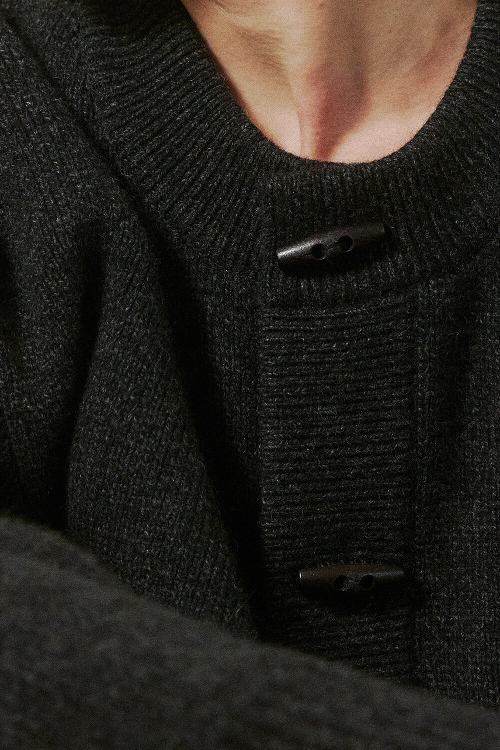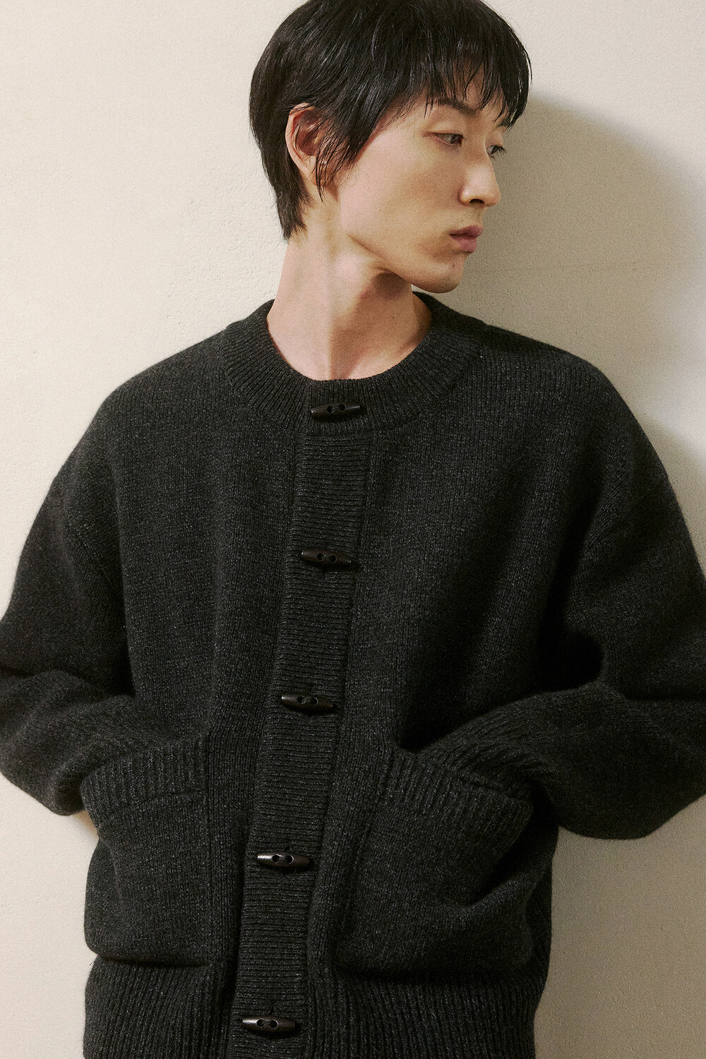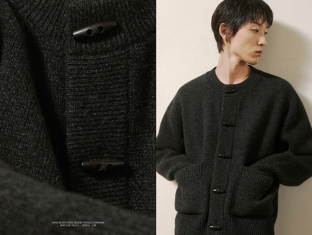 Daso Black Wool Blend Toggle Knit Cardigan · 다소 블랙 울 혼방 토글 니트 가디건