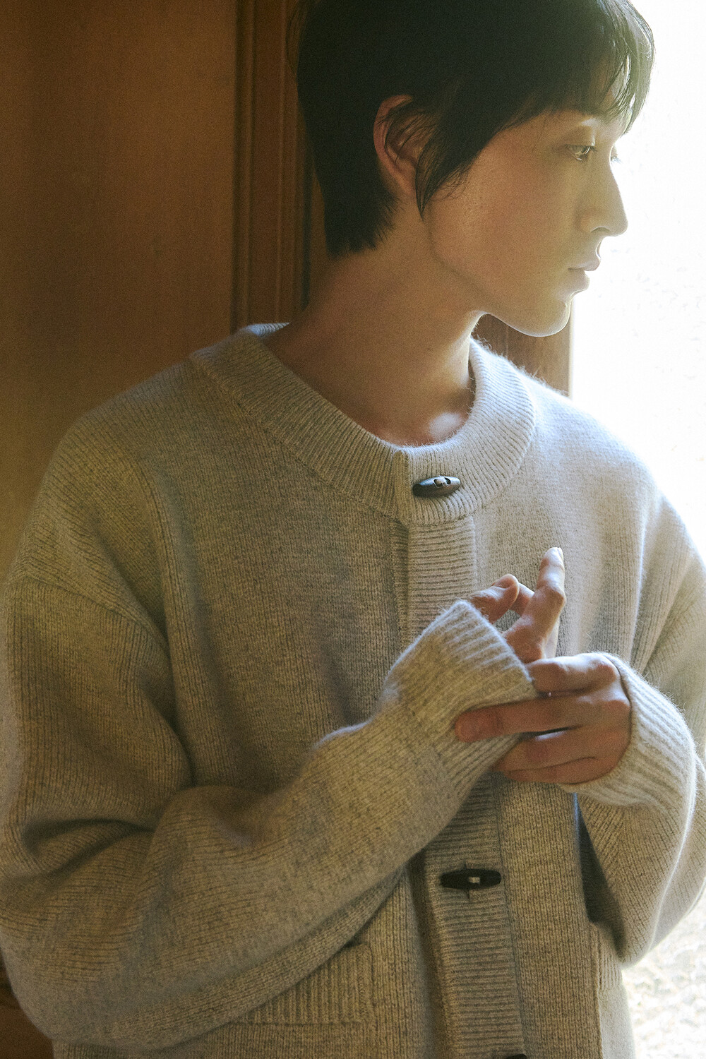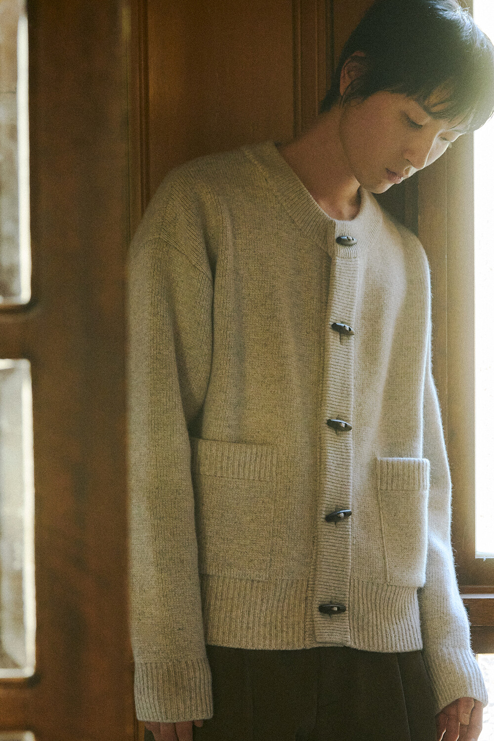 고급 메리노 울 & 폴리아미드, 라쿤, 캐시미어를 혼방하여 부드러운 촉감과 뛰어난 보온성을 모두 갖췄고, 5게이지의 헤비 니트 짜임으로 묵직하면서도 안정적인 실루엣을 완성했습니다. 버드 체의 로고가 각인된 우드 토글 디테일은 가디건의 고급스러움을 한층 더 강조하는 포인트가 됩니다. 넉넉하고 편안한 실루엣 덕분에 어떤 옷 위에 걸쳐도 부담스럽지 않게 기획했습니다.
