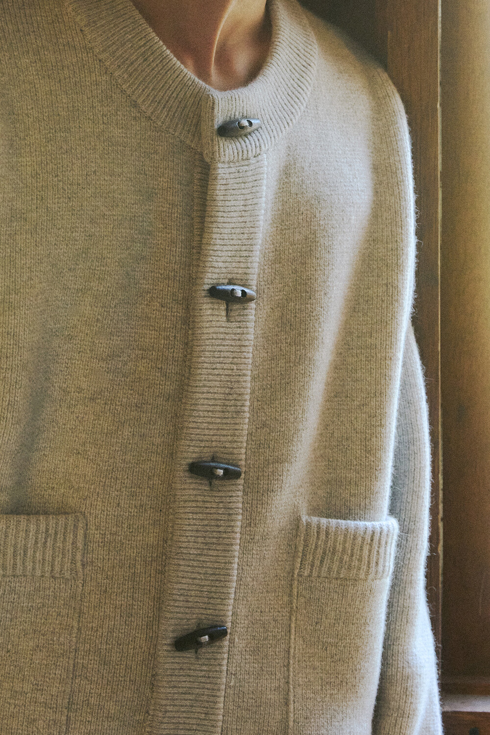 Daso Soft Grey Wool Blend Toggle Knit Cardigan · 다소 소프트 그레이 울 혼방 토글 니트 가디건
